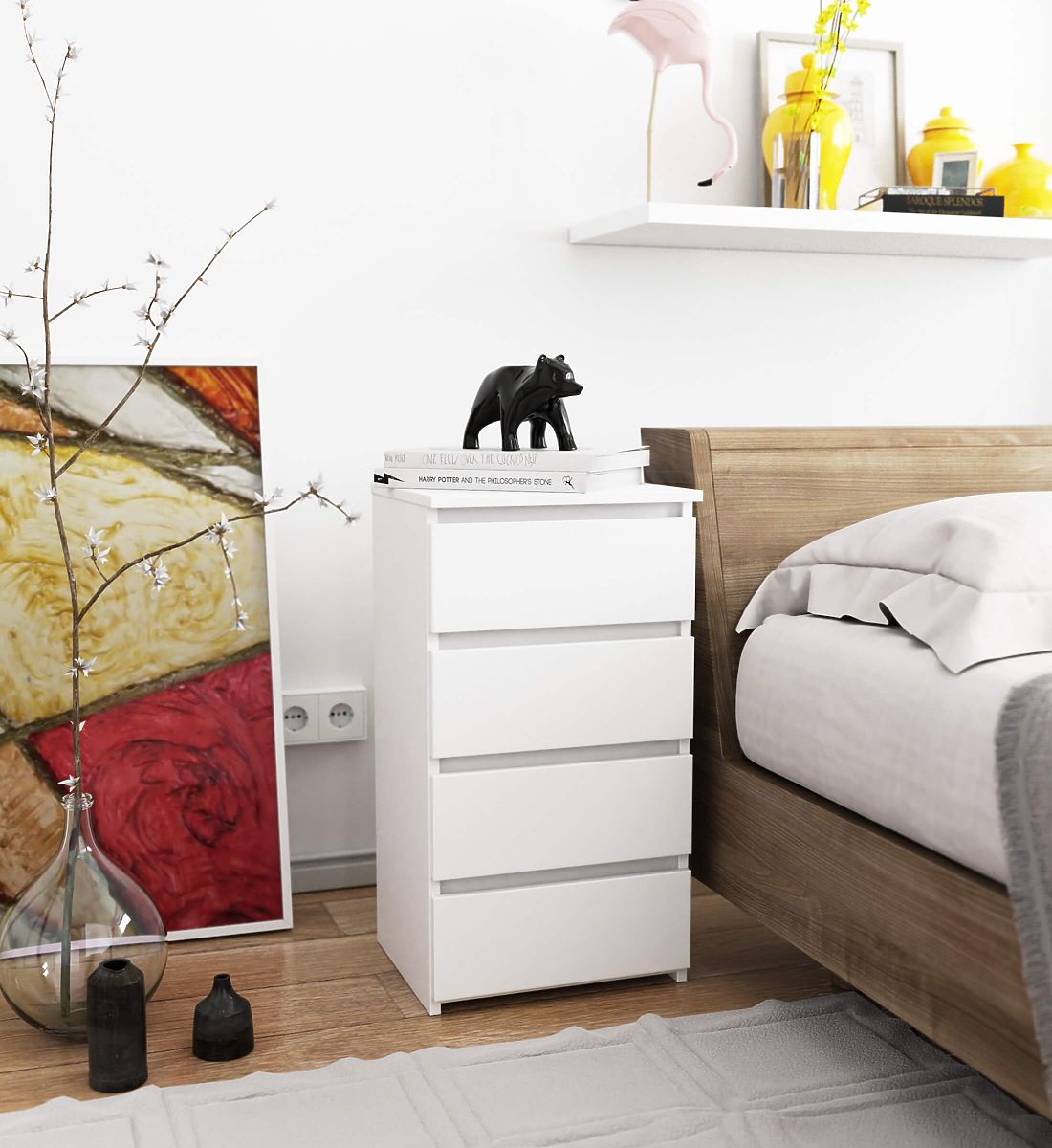 Les commodes sont un type de meuble populaire, souvent placées à côté du lit. Sur son plateau se trouve généralement une lampe, tandis qu'à l'intérieur se trouvent des objets facilitant le repos et le sommeil. Ceux qui recherchent une commode élégante devraient prêter attention à la commode CL4 de 40 cm en blanc. Elle s'intégrera parfaitement dans toute chambre à coucher. Elle peut également être placée dans une chambre d'enfant.