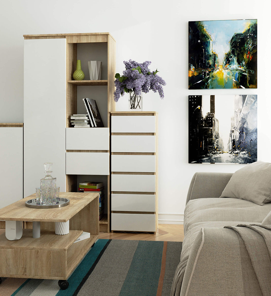 COMMODE CL6 6T CHÊNE SONOMA / BLANC