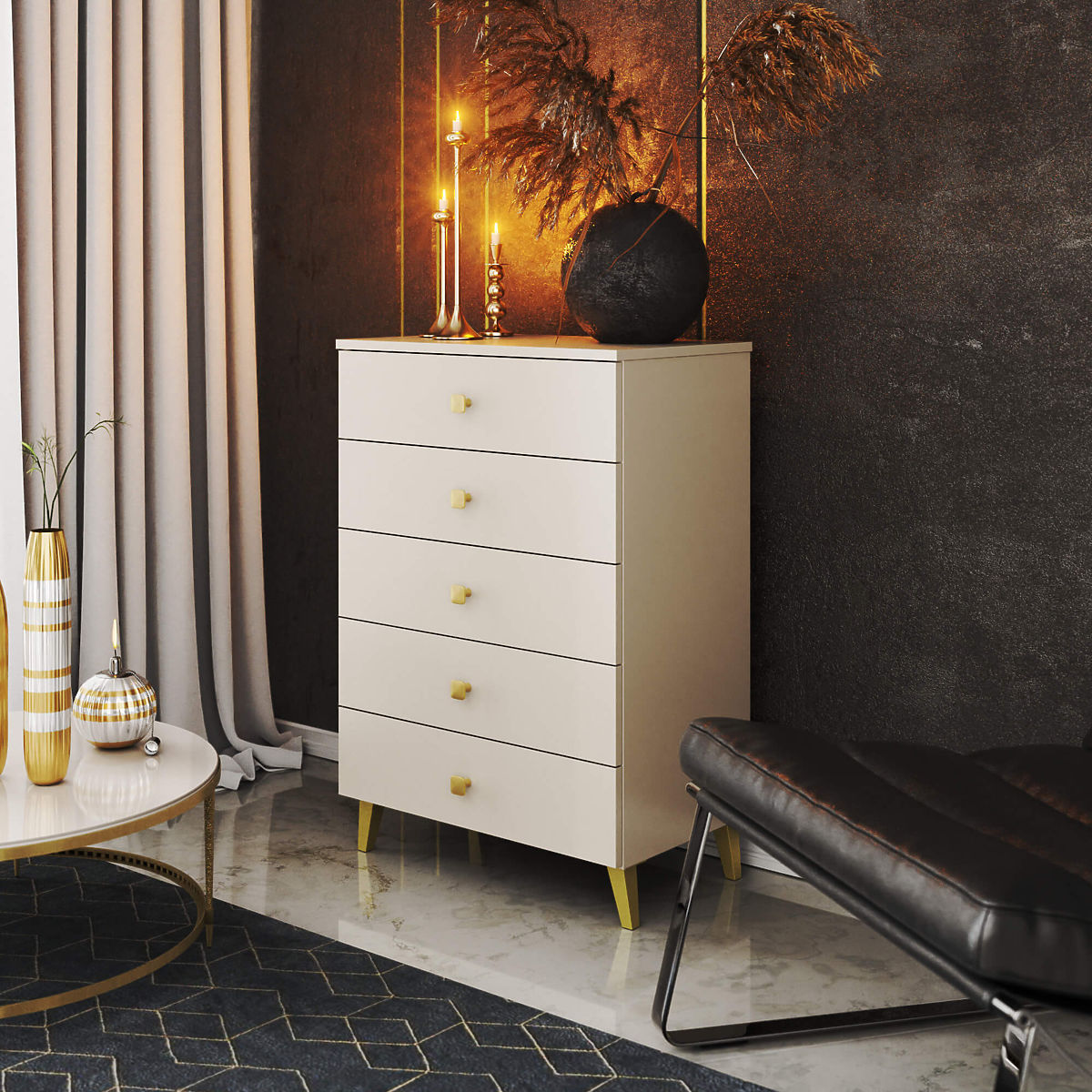 COMMODE MOBI 5 TIROIRS CACHEMIRE OR