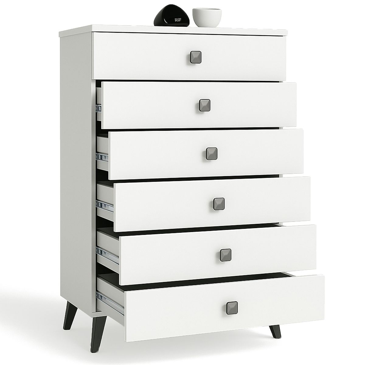 COMMODE MOBI 6 TIROIRS BLANC NOIR