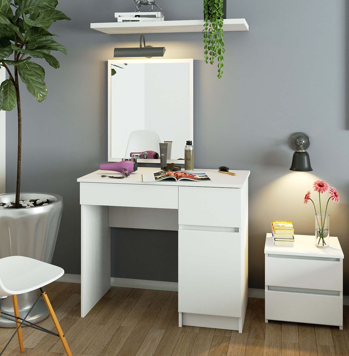Version compacte de la coiffeuse pour les femmes qui souhaitent se maquiller rapidement chaque matin. Solution conçue pour la chambre à coucher et pas seulement. Les dimensions de la coiffeuse conviennent également aux salons de beauté.
