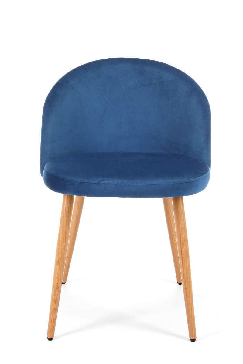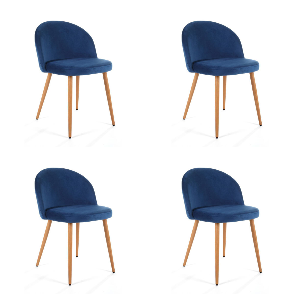 Chaise en velours bleu marine avec pieds en métal couleur hêtre. .. plus