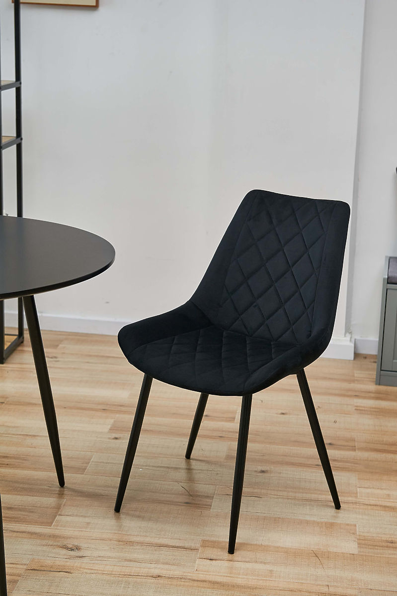 Chaise matelassée en velours avec pieds en métal noir. .. plus