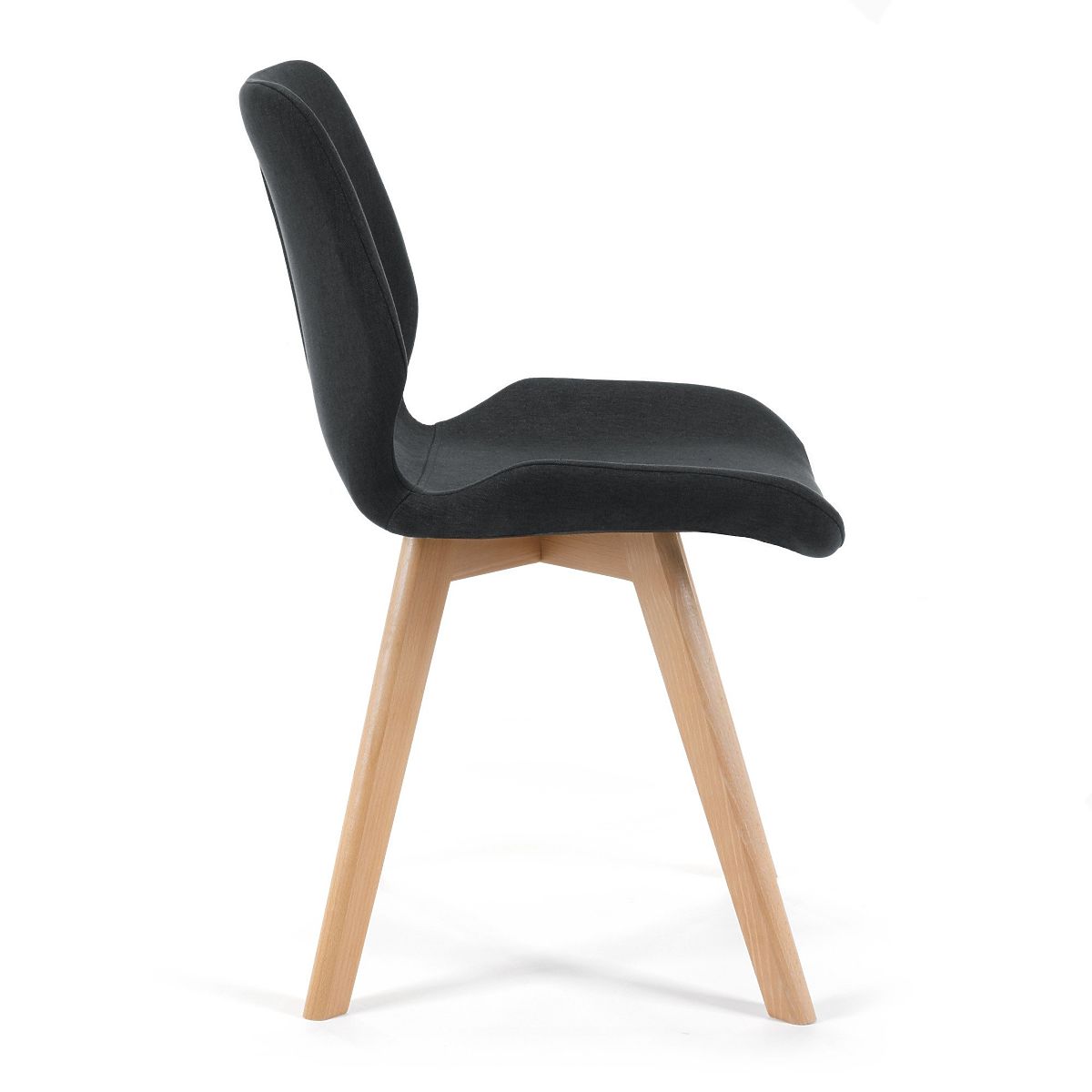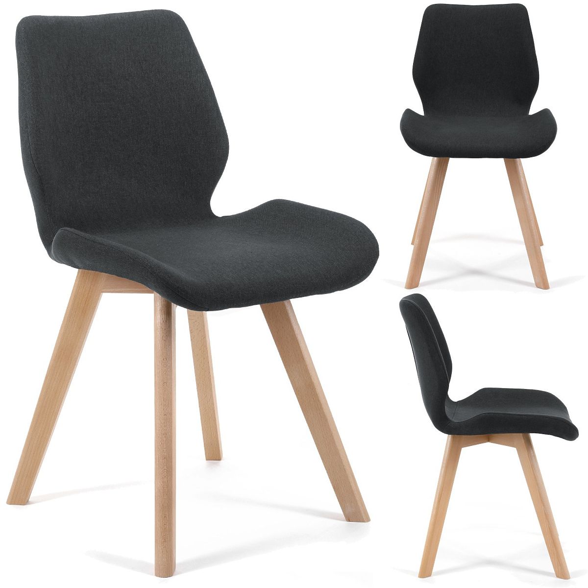 Chaise noire scandinave avec pieds en bois et revêtement en tissu. .. plus
