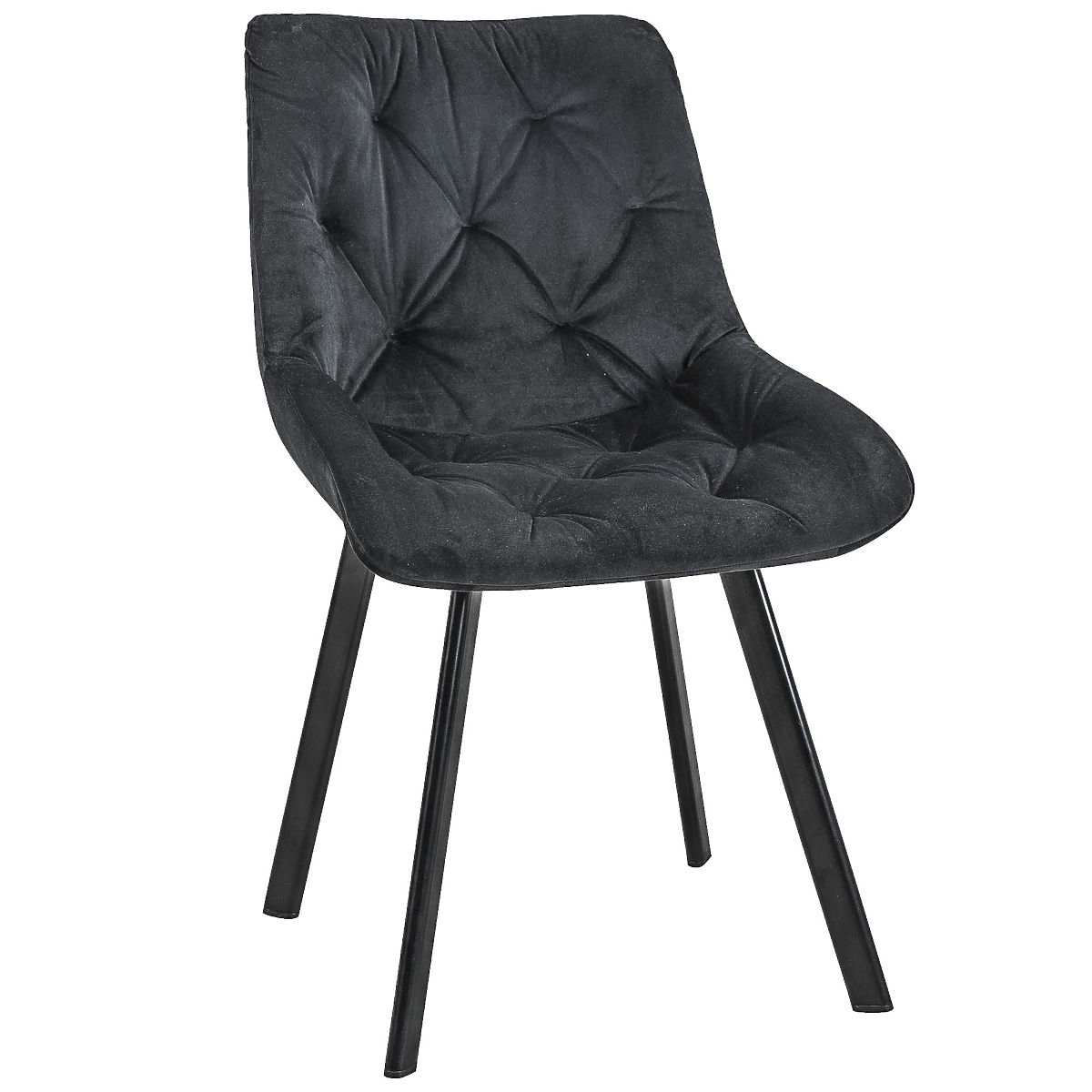 Chaise moderne en velours noir avec pieds en métal. .. plus