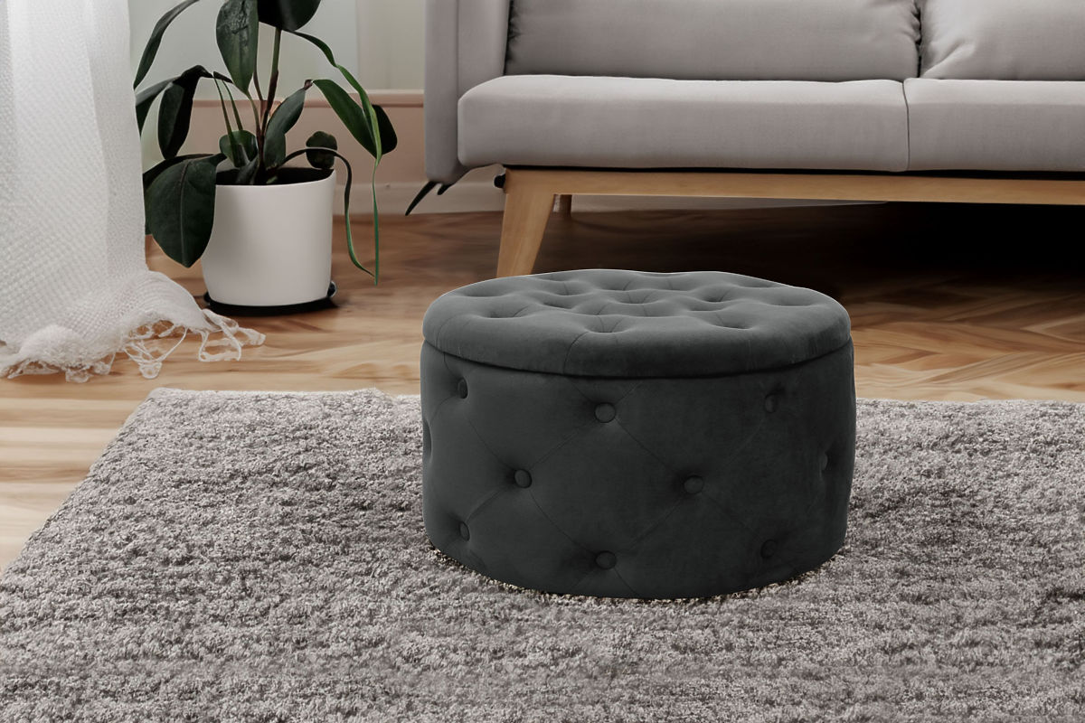 Pouf matelassé noir avec rangement pour salon. .. plus