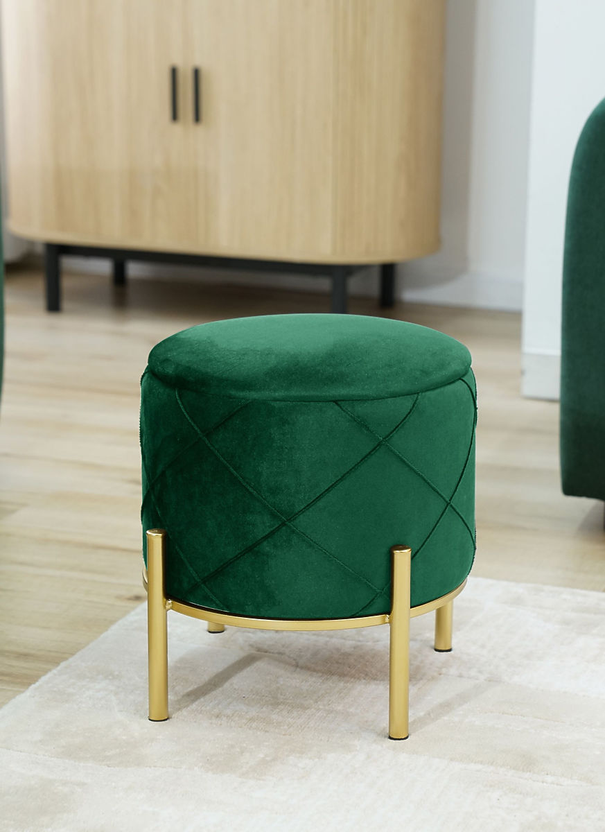 Le repose-pieds ou pouf est un excellent complément pour le salon ou la chambre. Il permet à vos pieds fatigués de se reposer après une journée de marche, et s'il est fabriqué en velours doux, il accentue encore plus la sensation agréable de détente. L'aspect moderne est complété par des pieds métalliques peints en doré, une couleur très tendance cette année. Le couvercle ouvrant donne accès à un espace de rangement où vous pouvez stocker des objets non nécessaires à un usage quotidien.Spécifications :