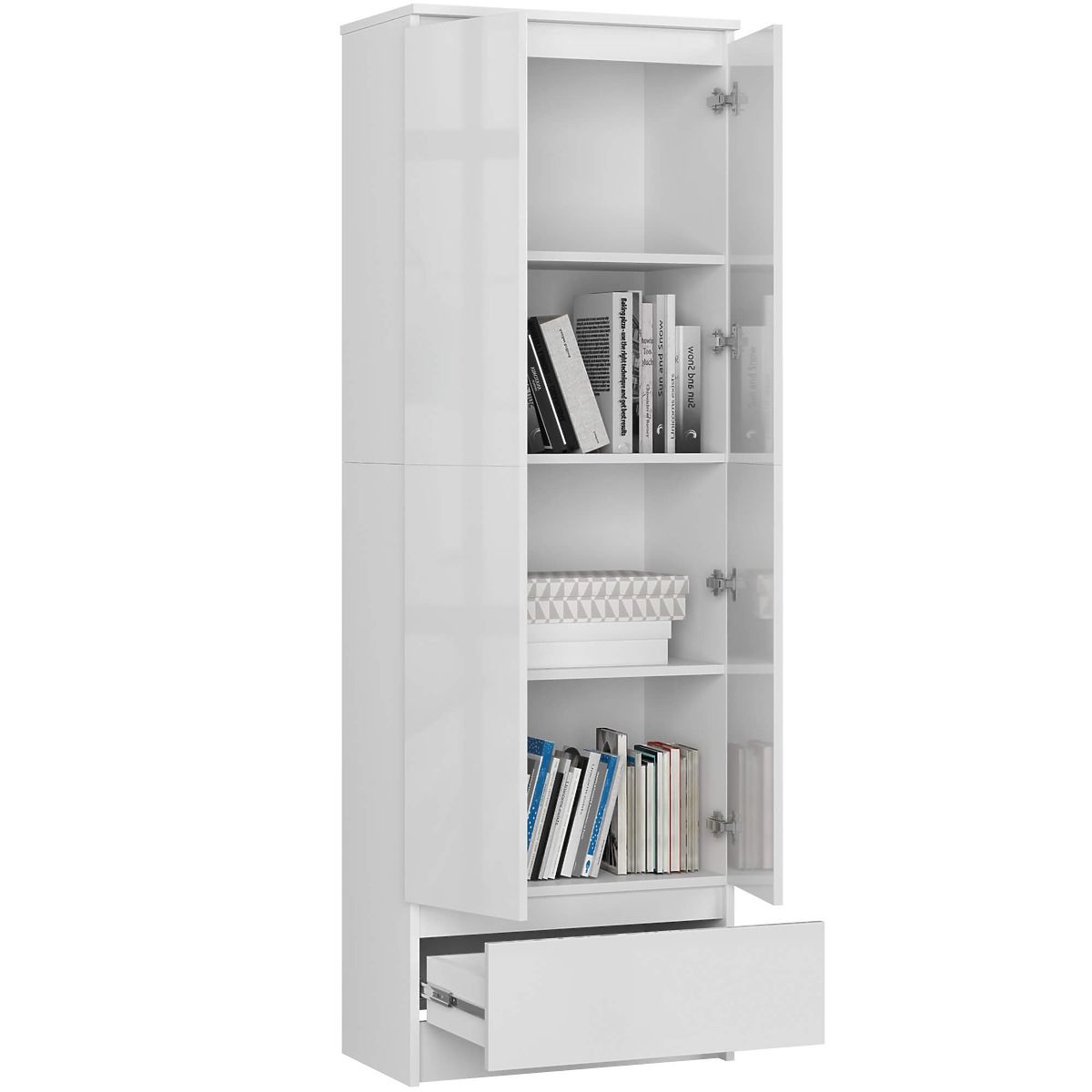 BIBLIOTHÈQUE FERMÉE CLP 60cm 1 TIROIR 2 PORTES Corps - Blanc | Façades - Blanc Brillant