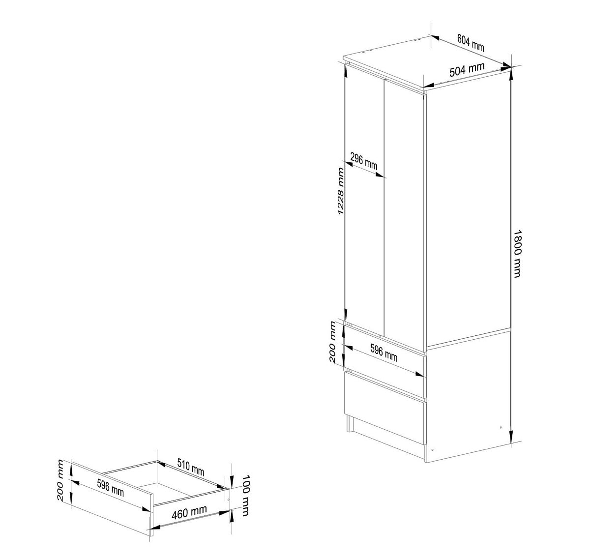 ARMOIRE STAR K60 2 PORTES, 2 TIROIRS Réalisée en panneau stratifié de 16 mm résistant à l'usure.