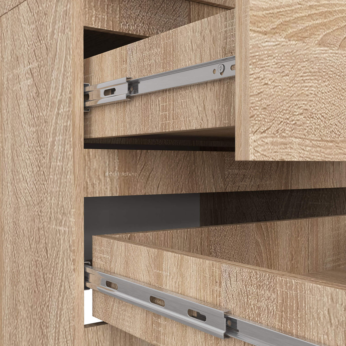 - Tiroirs sur glissières à billes métalliques de la marque renommée GTV- Bords recouverts de chant ABS offrant une haute protection contre les dommages