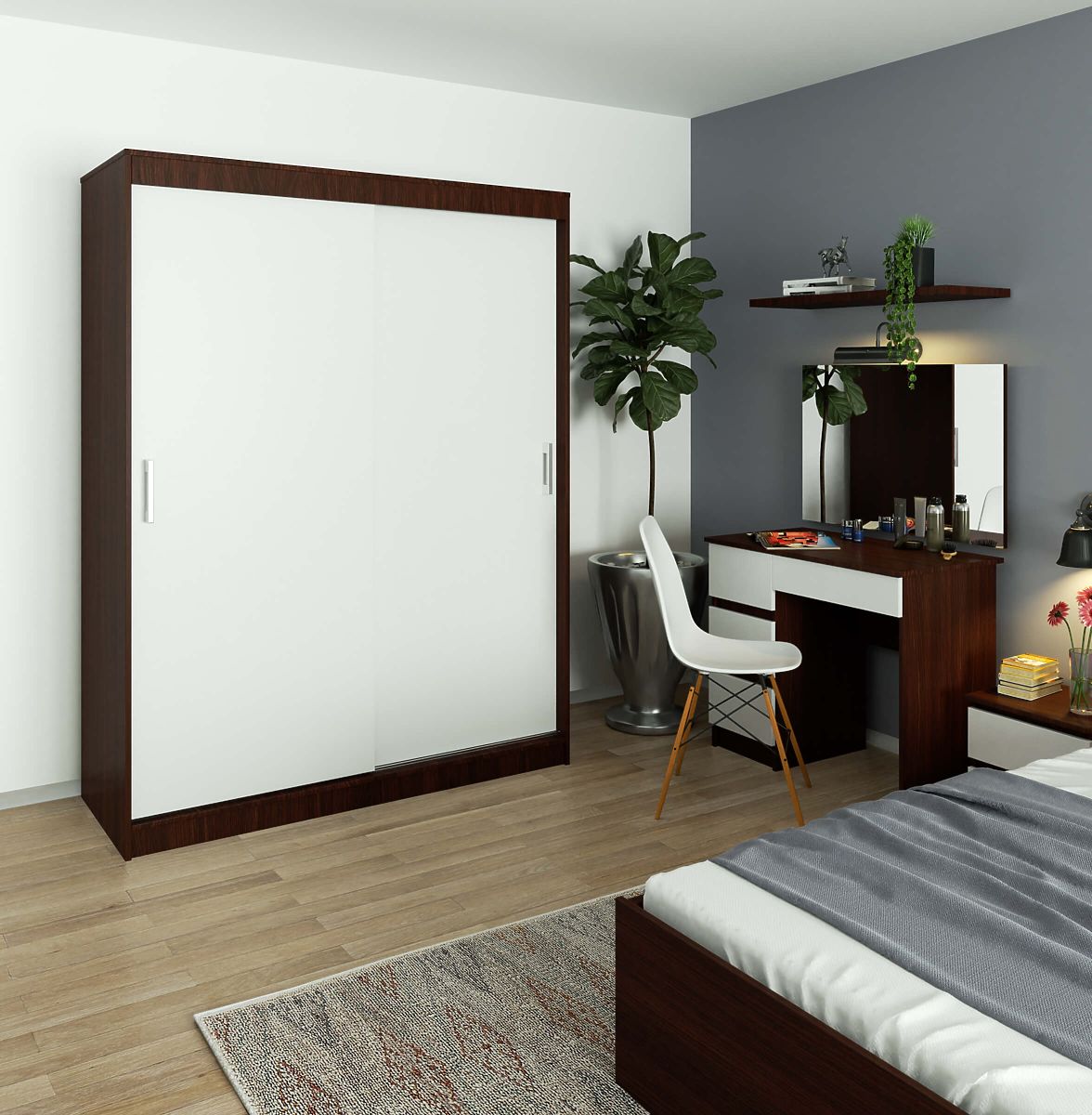 Armoire coulissante 150 cm CLP en wenge et blanc, spacieuse et fonctionnelle. .. plus
