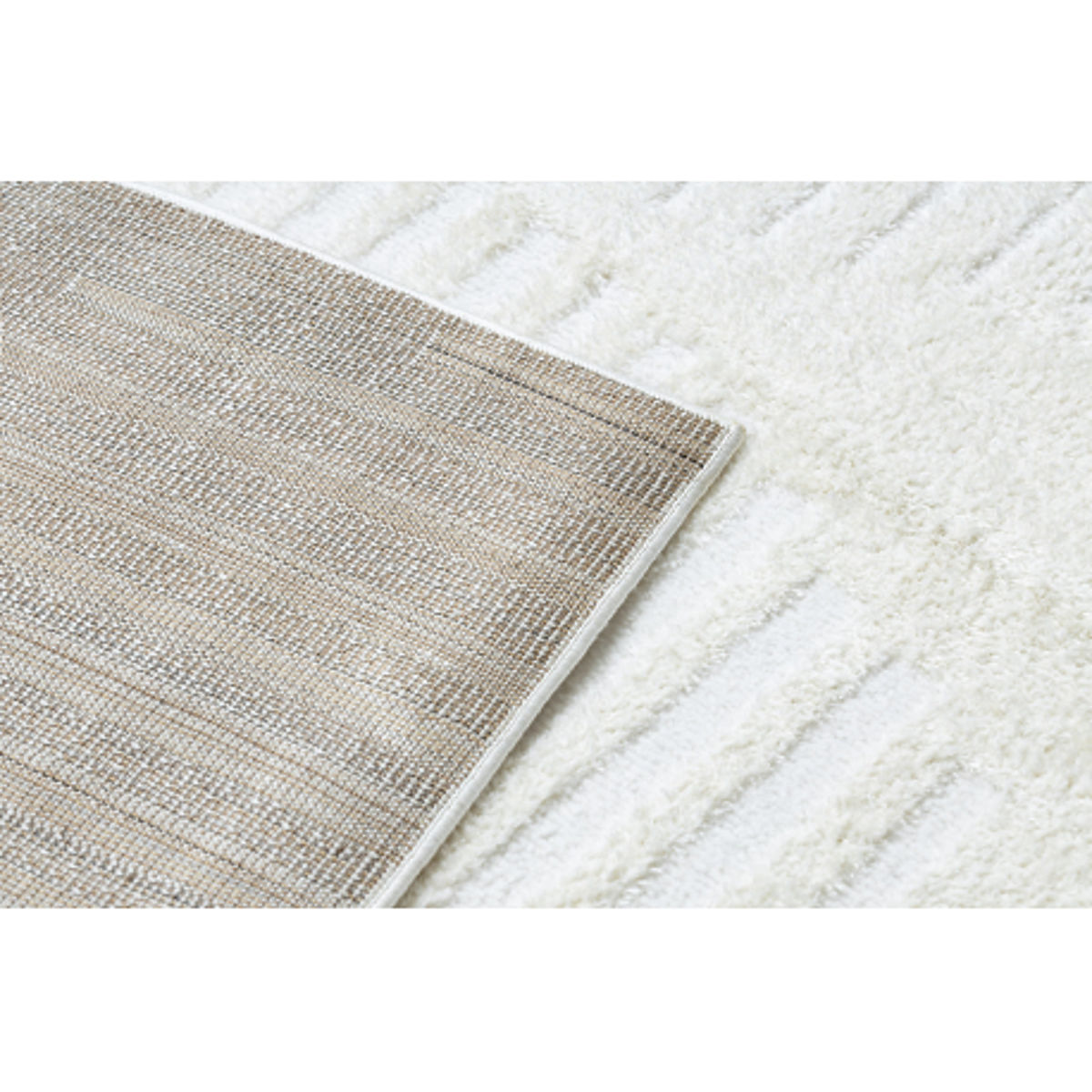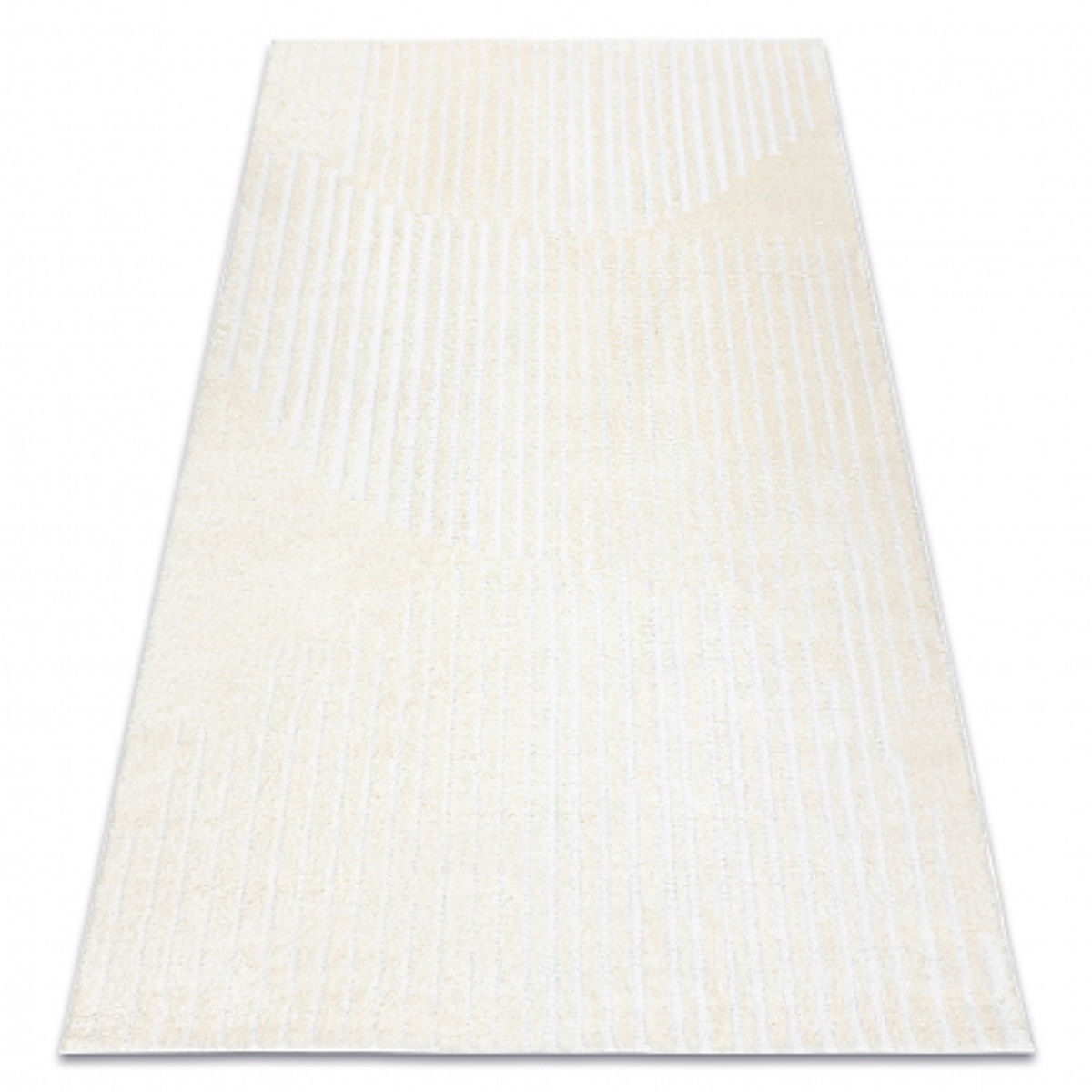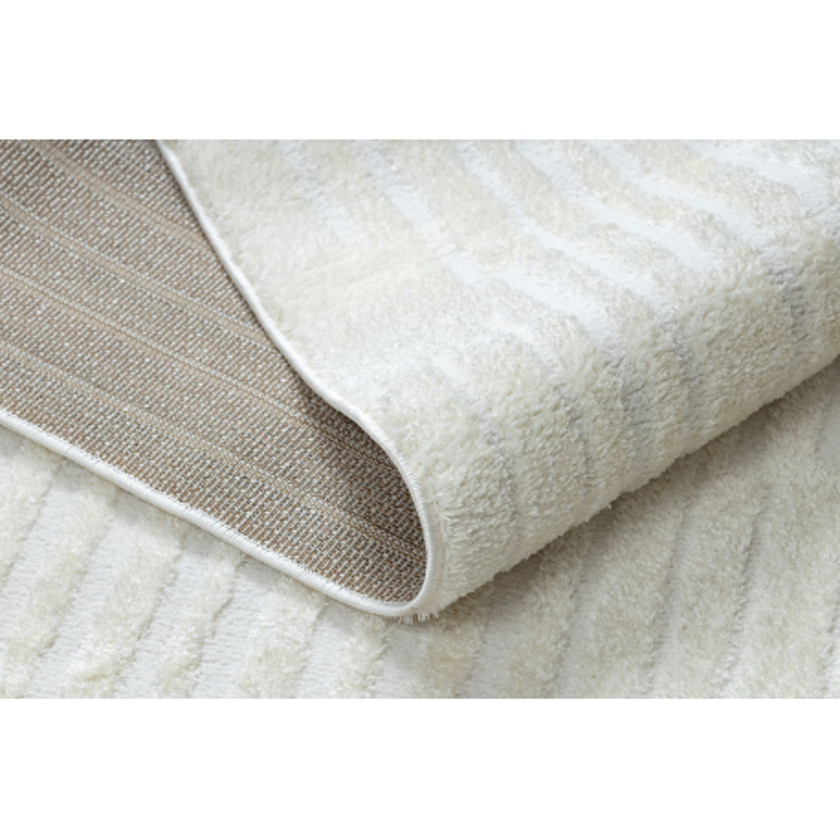 Tapis géométrique crème en polyester, idéal pour salon ou chambre. .. plus