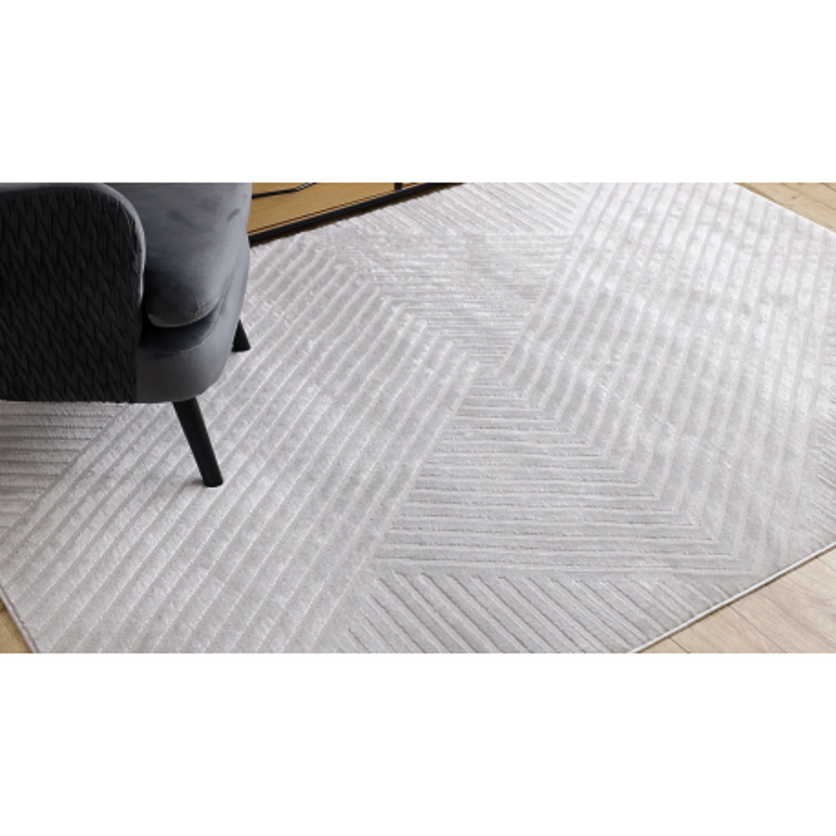 Tapis gris BALANCE 1503 avec motif géométrique et effet glamour. .. plus
