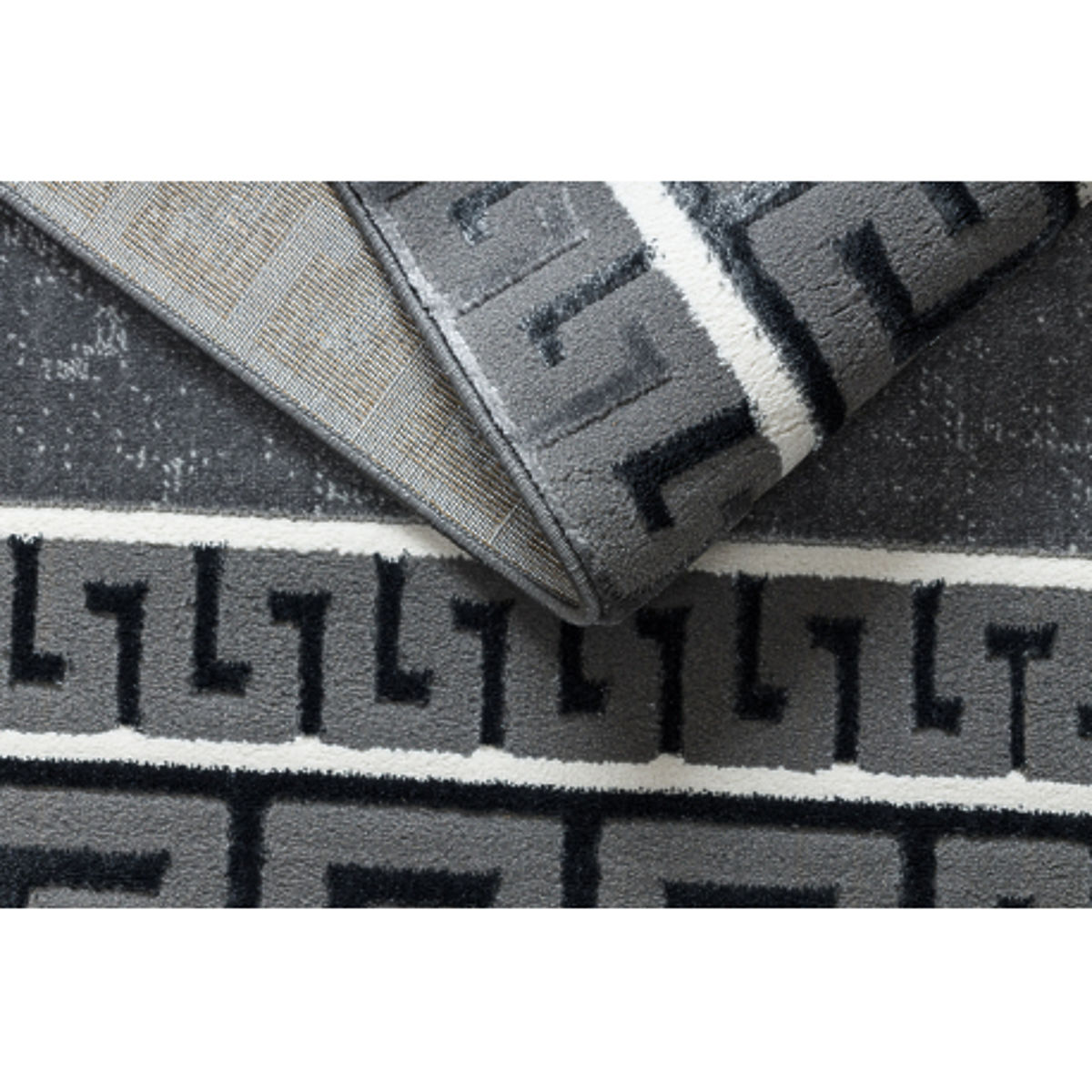 Lukahome.fr » Textile / Tapis / Tapis ALLURE 1960 motif clé grecque, cadre - Structurel, stylé, glamour gris
