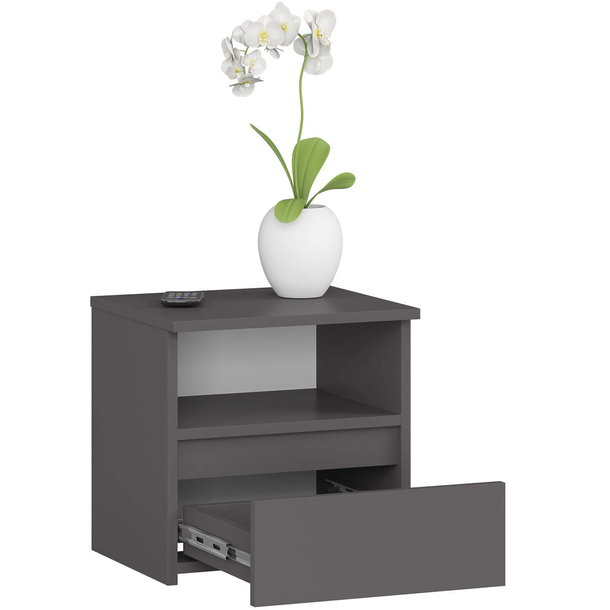Table de chevet CL1 40 cm en gris graphite avec tiroir pratique. .. plus