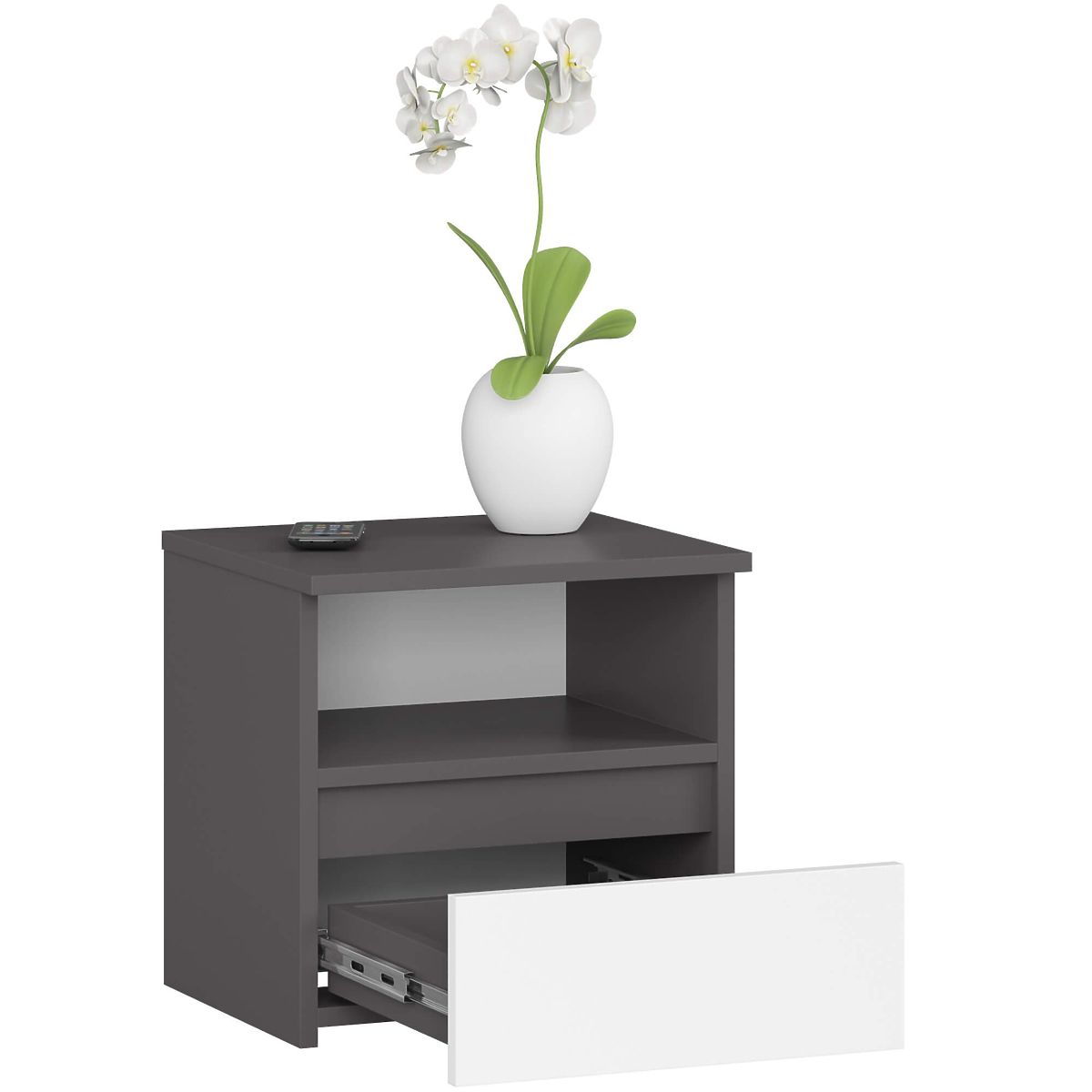 Table de chevet CL1 en gris graphite et blanc avec un tiroir. .. plus