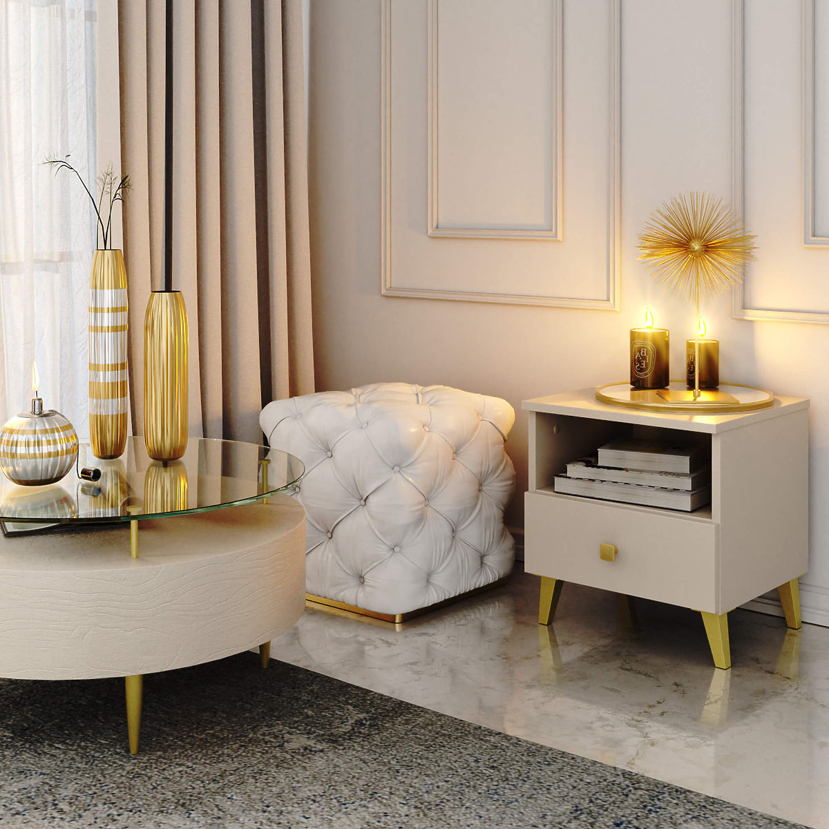 Table de nuit MOBI K01 avec tiroir et étagère en cachemire or. .. plus