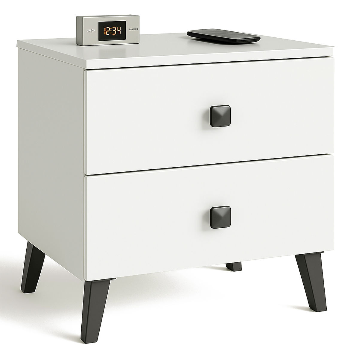 Table de nuit MOBI K02 avec 2 tiroirs, en blanc et noir. .. plus