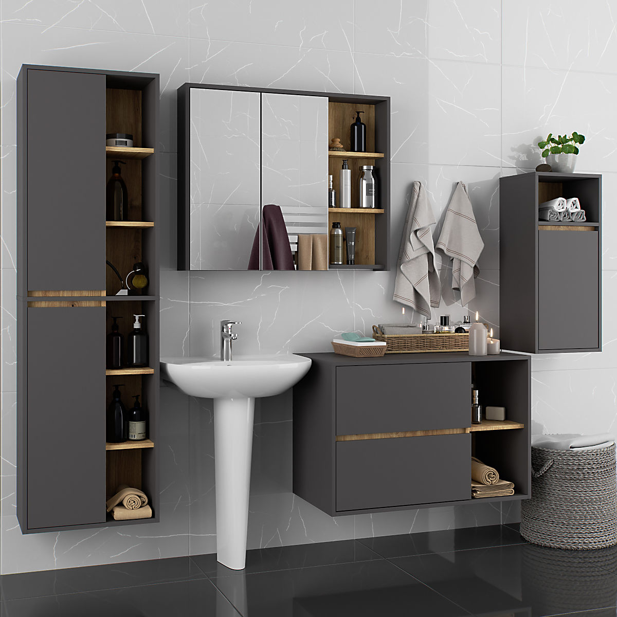 Lukahome.fr » Bathroom & Toilet / Salle de bain armoires / ARMOIRE DE SALLE DE BAIN SUSPENDUE VAMI W35 1D 1W GRIS GRAPHITE / CHÊNE ARTISAN