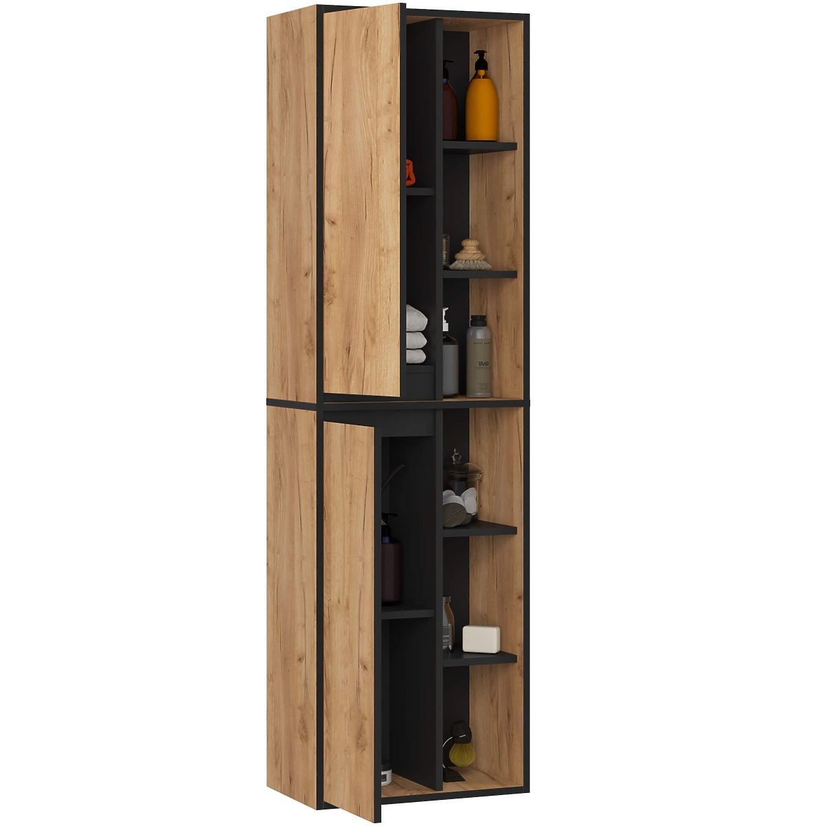 Lukahome.fr » Salle de bains et toilettes / meubles de salle de bain / ARMOIRE DE SALLE DE BAIN MURALE VAMI W50 2D 6P CHÊNE CRAFT / NOIR