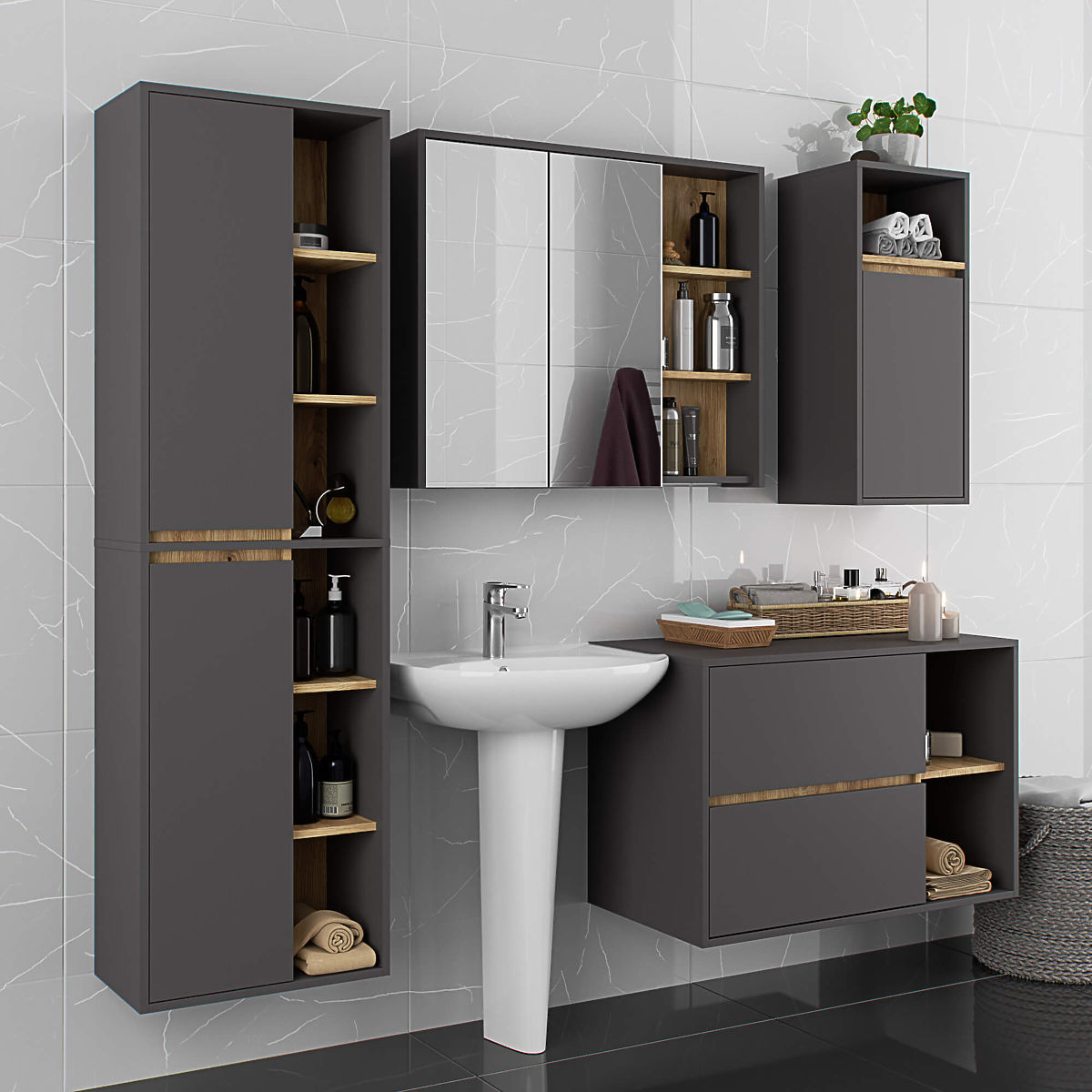 Lukahome.fr » Salle de bains et toilettes / meubles de salle de bain / ARMOIRE DE SALLE DE BAIN MURALE VAMI W50 2D 6P GRIS GRAPHITE / CHÊNE ARTISAN