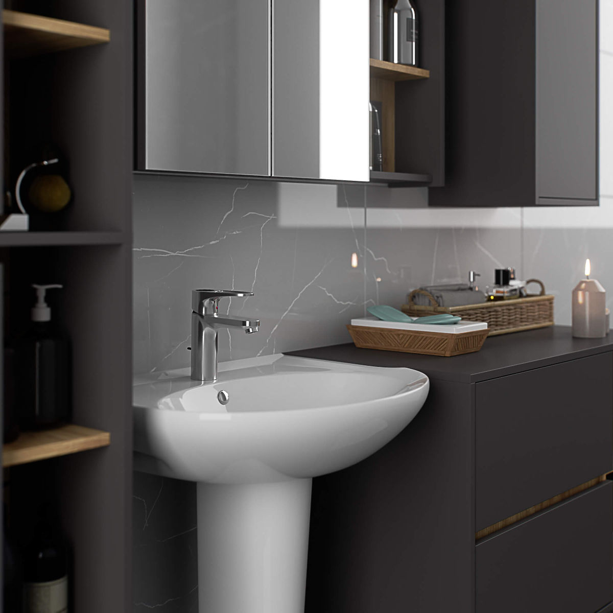 Les armoires de salle de bain complètent parfaitement l'équipement de la salle de bain, offrant l'espace nécessaire pour tous les cosmétiques et détergents et donnant à la salle de bain un style défini. Les armoires spacieuses facilitent le maintien de l'ordre dans la pièce, ce qui améliore l'esthétique de l'intérieur. La collection VAMI se distingue par une palette de couleurs élégante et accrocheuse - le corps et les façades ont la même couleur, tandis que la couleur intérieure est différente.
