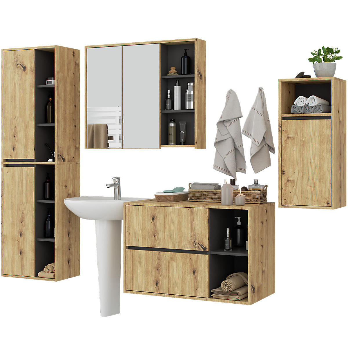 Lukahome.fr » Salle de bains et toilettes / ensembles de salle de bain / ENSEMBLE DE MEUBLES DE SALLE DE BAIN SUSPENDUS VAMI CHÊNE ARTISAN / GRIS GRAPHITE