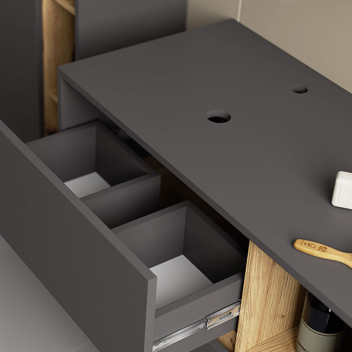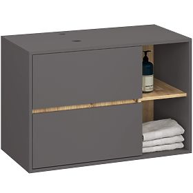 Lukahome.fr » Salle de bains et toilettes / meubles de salle de bain / ARMOIRE DE SALLE DE BAIN SOUS LAVABO AVEC TROUS VAMI W90 UM 2SZ 2P GRIS GRAPHITE / CHÊNE ARTISAN