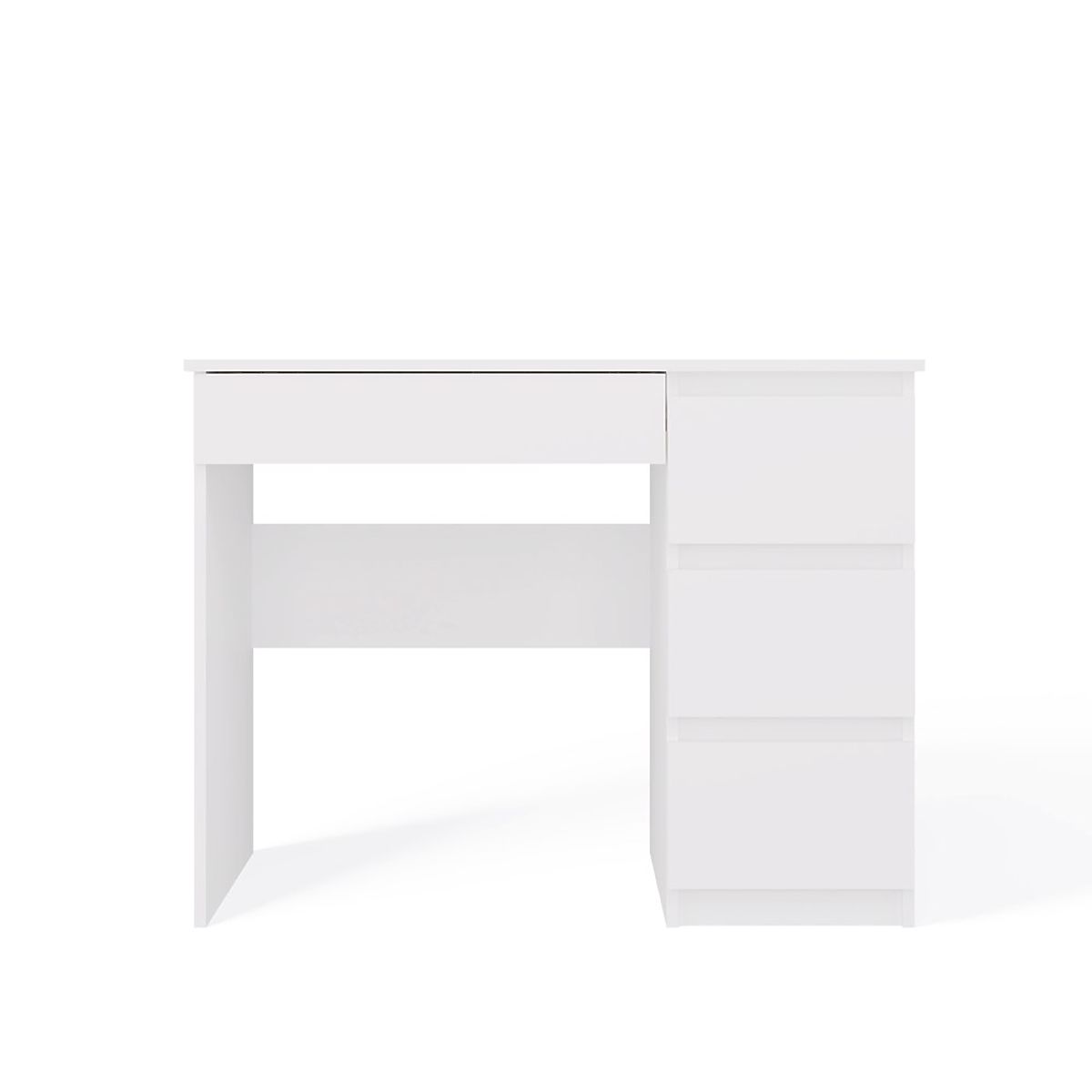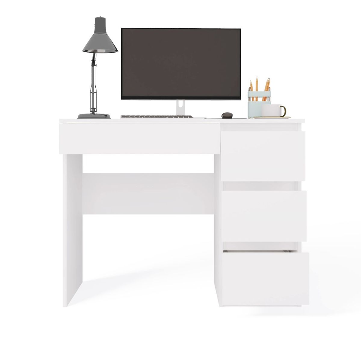 Bureau blanc avec 4 tiroirs, idéal pour la maison ou le bureau. .. plus