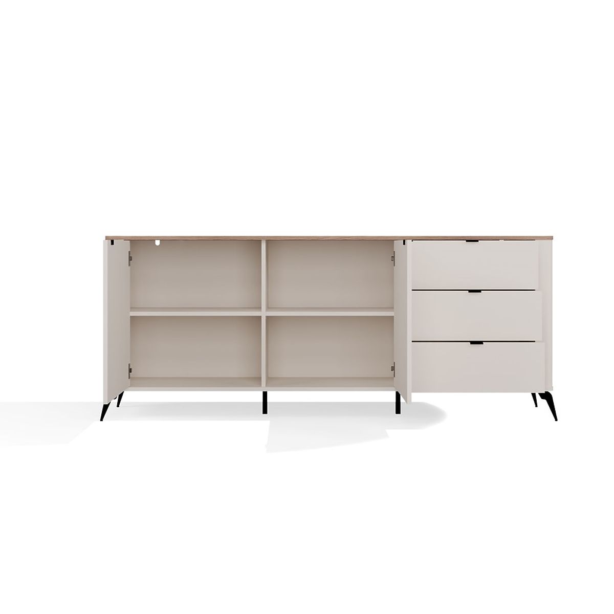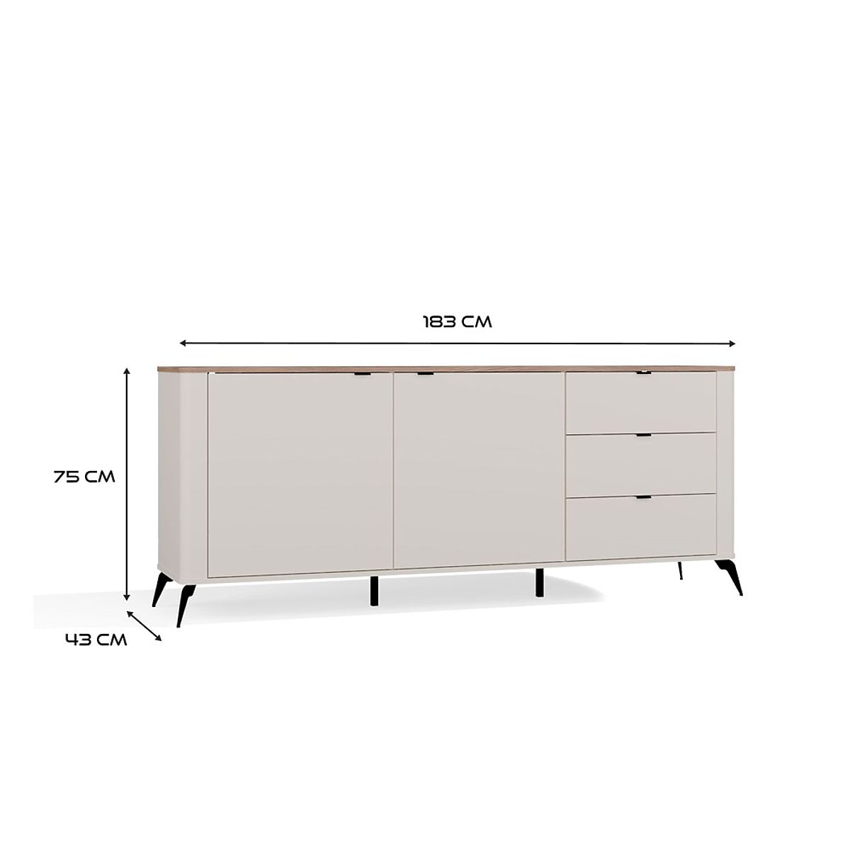 Commode large avec 2 portes et 3 tiroirs, couleur cachemire. .. plus