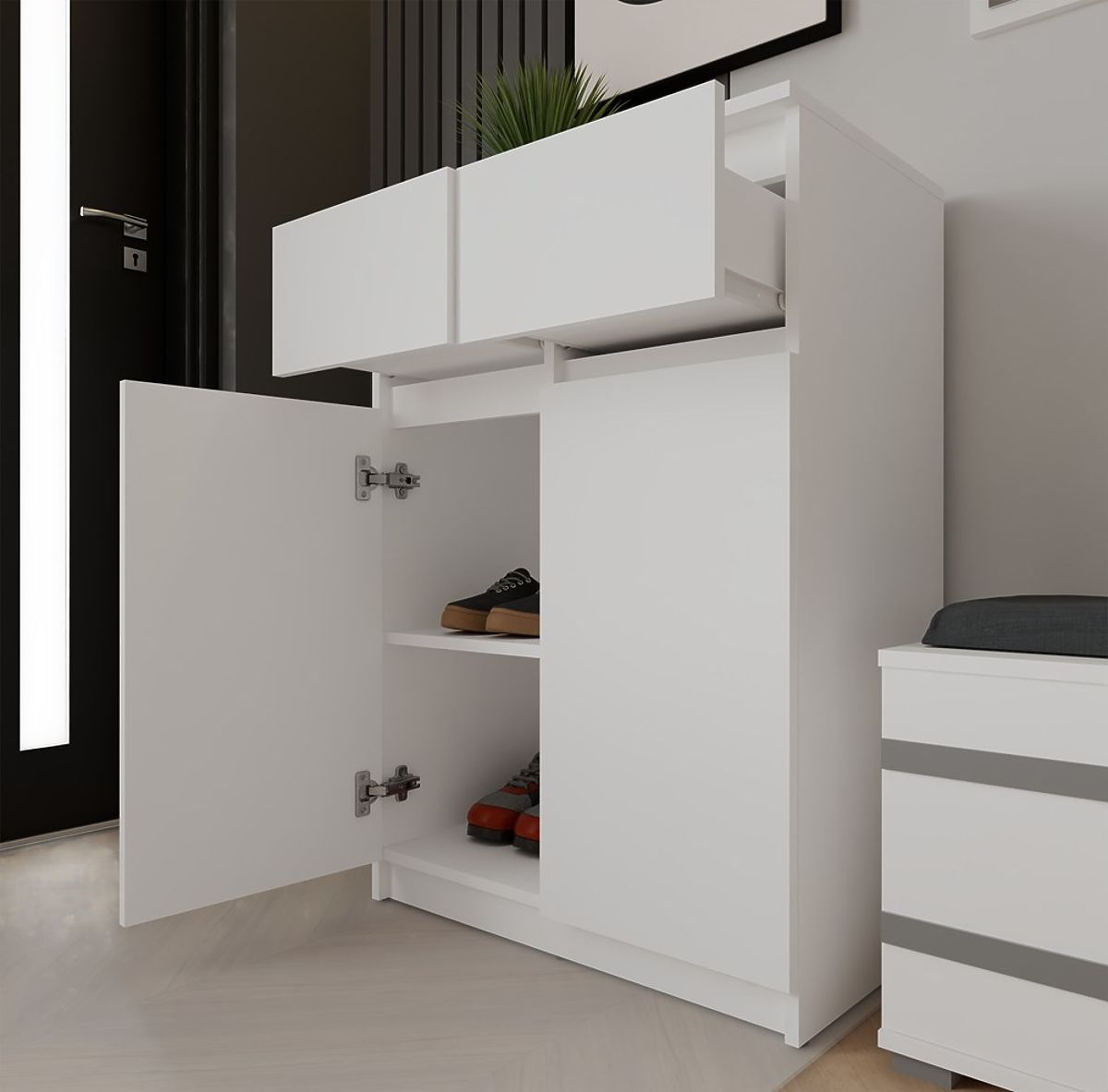 Commode blanche 2DD2S avec 2 portes et 2 tiroirs pour grand espace de rangement. .. plus
