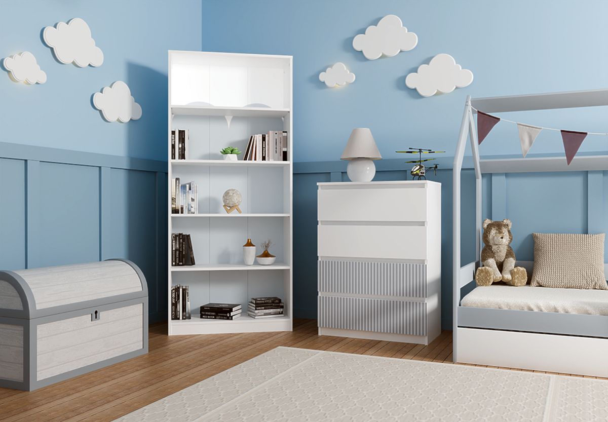 La commode moderne de la collection MALWA et de la série ARTESO est un meuble fonctionnel et spacieux, idéal pour une chambre d'adolescent ou une chambre d'enfant.