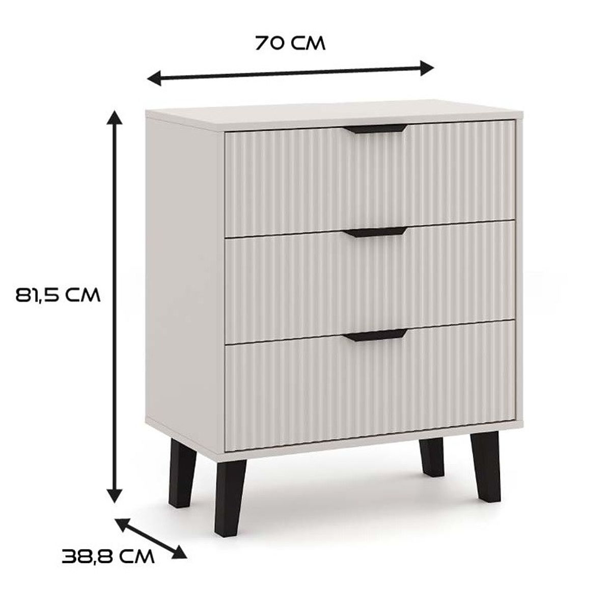 La commode SCANDI 3S SLIM est un choix idéal pour ceux qui recherchent un meuble de rangement pratique avec une touche de design moderne. La couleur à la mode Cachemire, combinée aux façades rainurées et aux pieds hauts noirs, apporte confort et élégance à l'intérieur.
