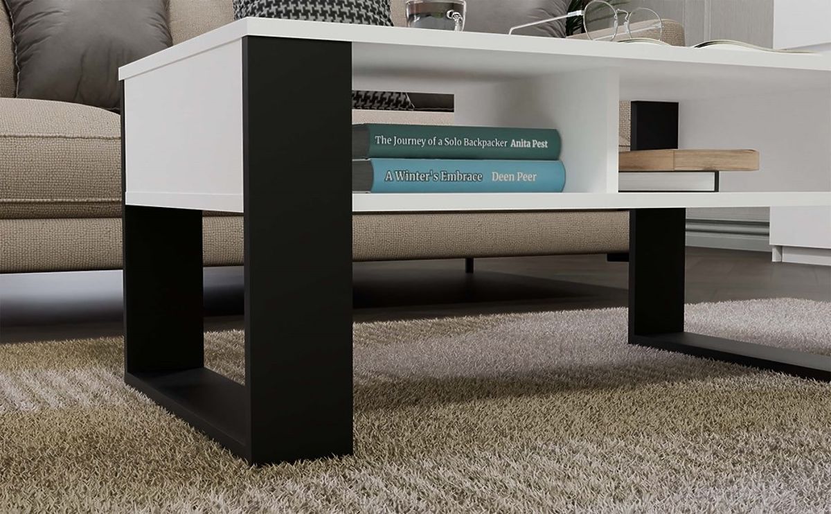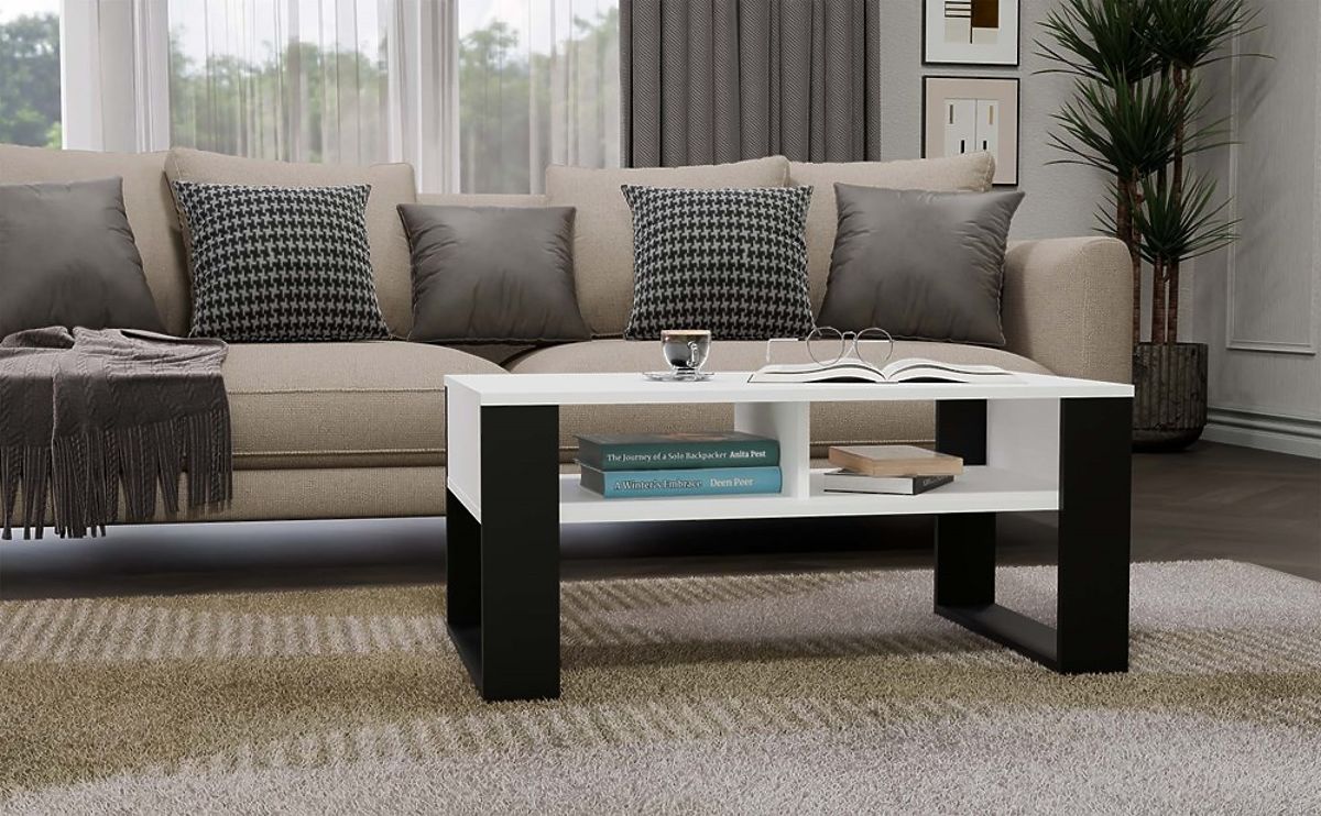Table basse moderne avec deux étagères spacieuses. .. plus