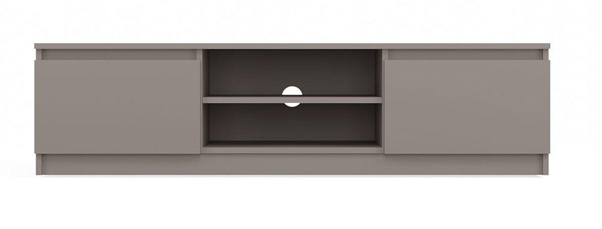 Une étagère ouverte permet de placer facilement les appareils TV et un trou à l'arrière facilite l'installation discrète des câbles.