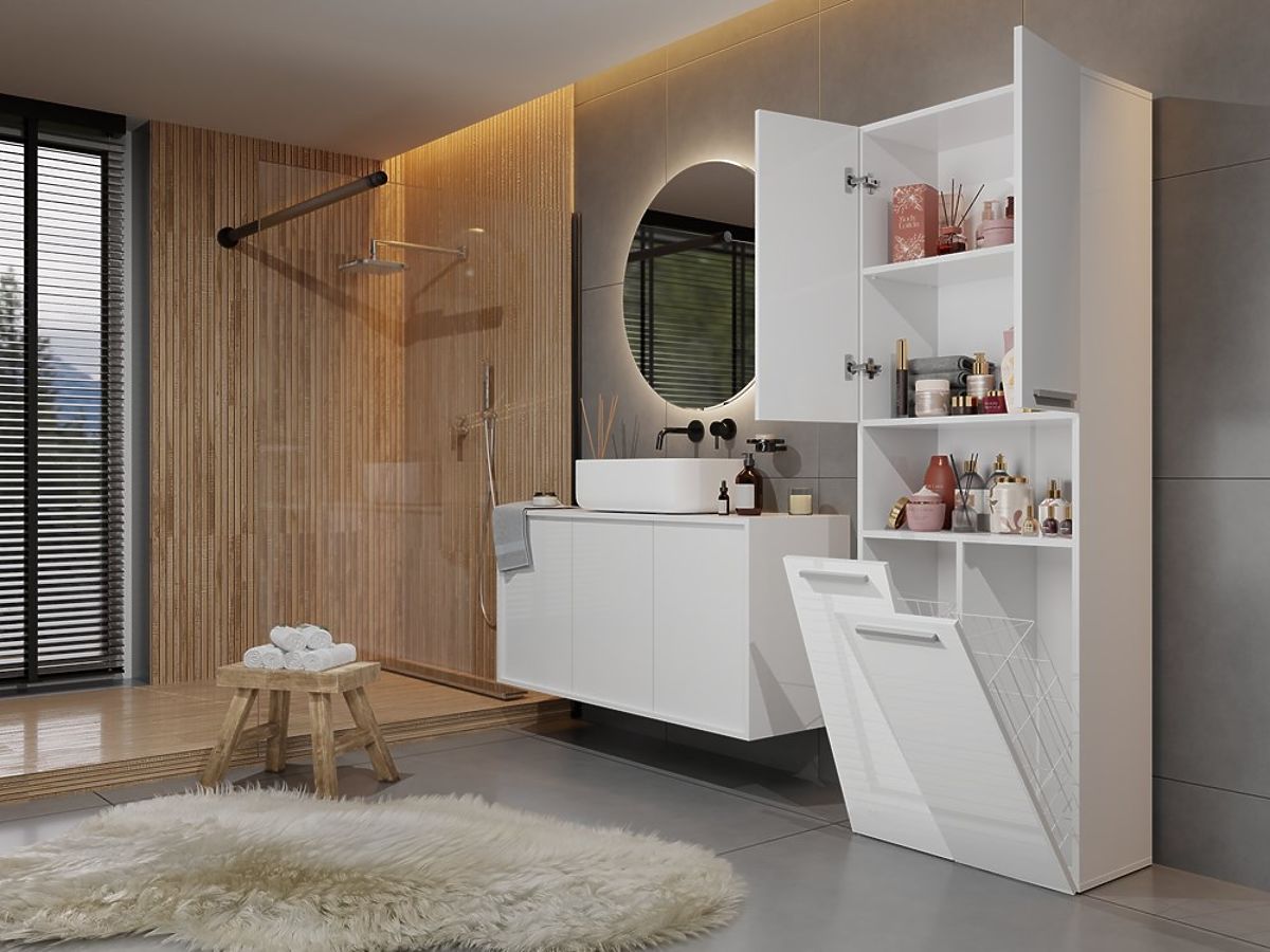 Lukahome.fr » Bathroom & Toilet / Salle de bain armoires / Armoire de salle de bain Nel 2K/DK BLANC BRILLANT