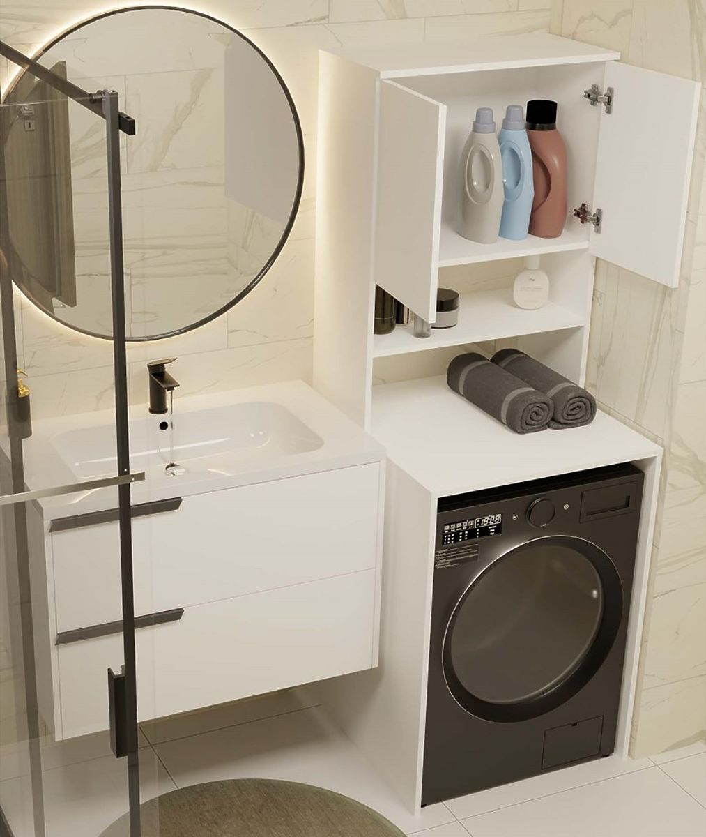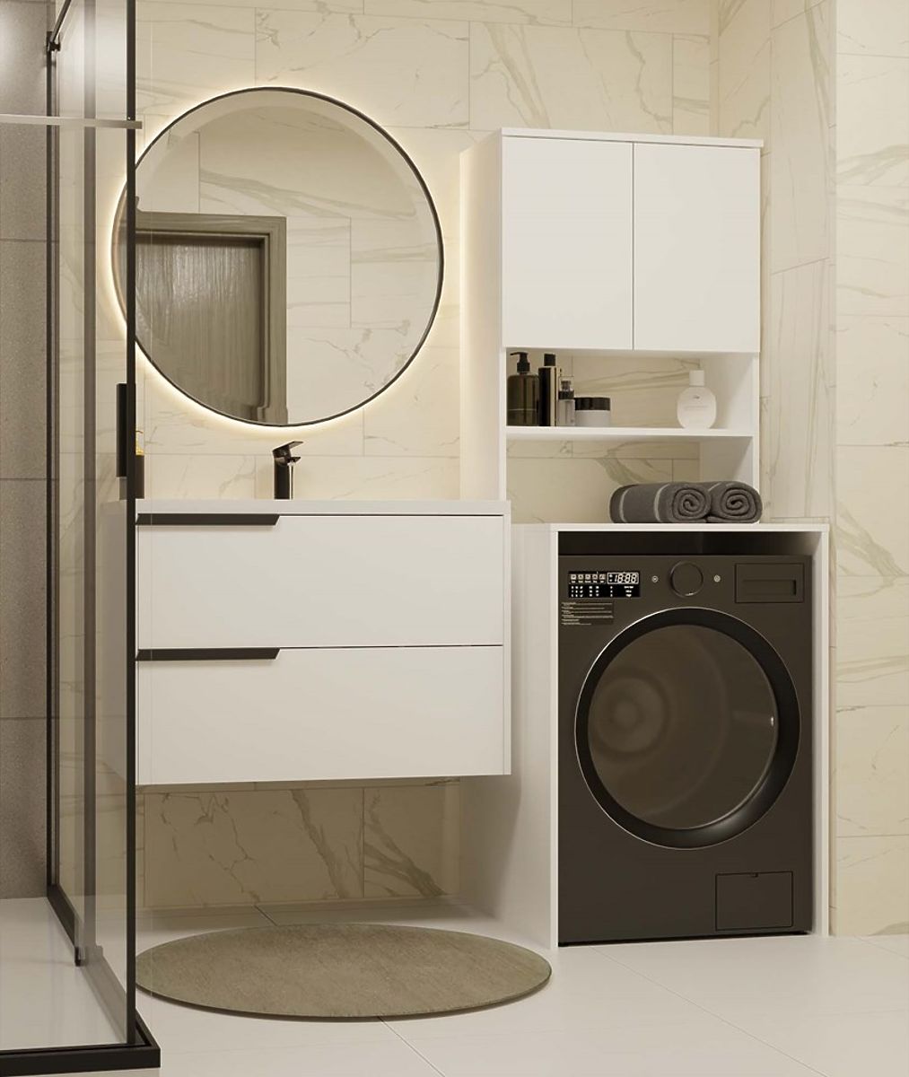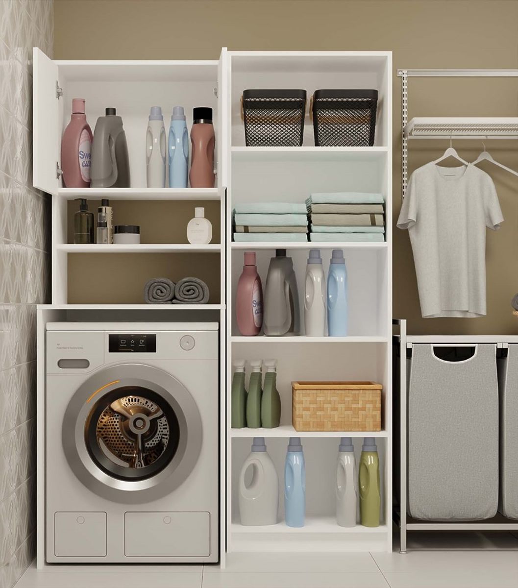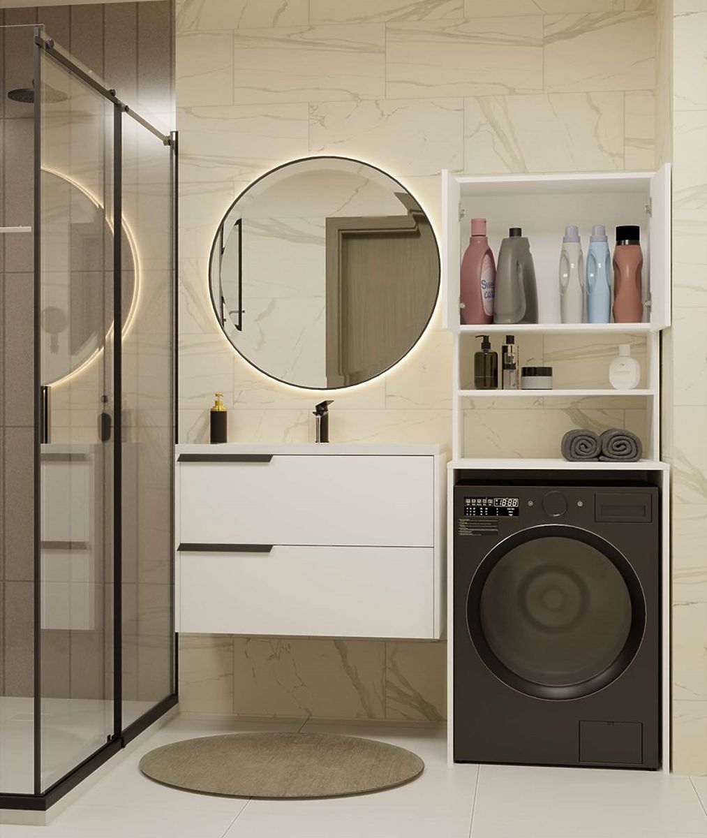 Étagère moderne pour salle de bain au-dessus de la machine à laver. .. plus