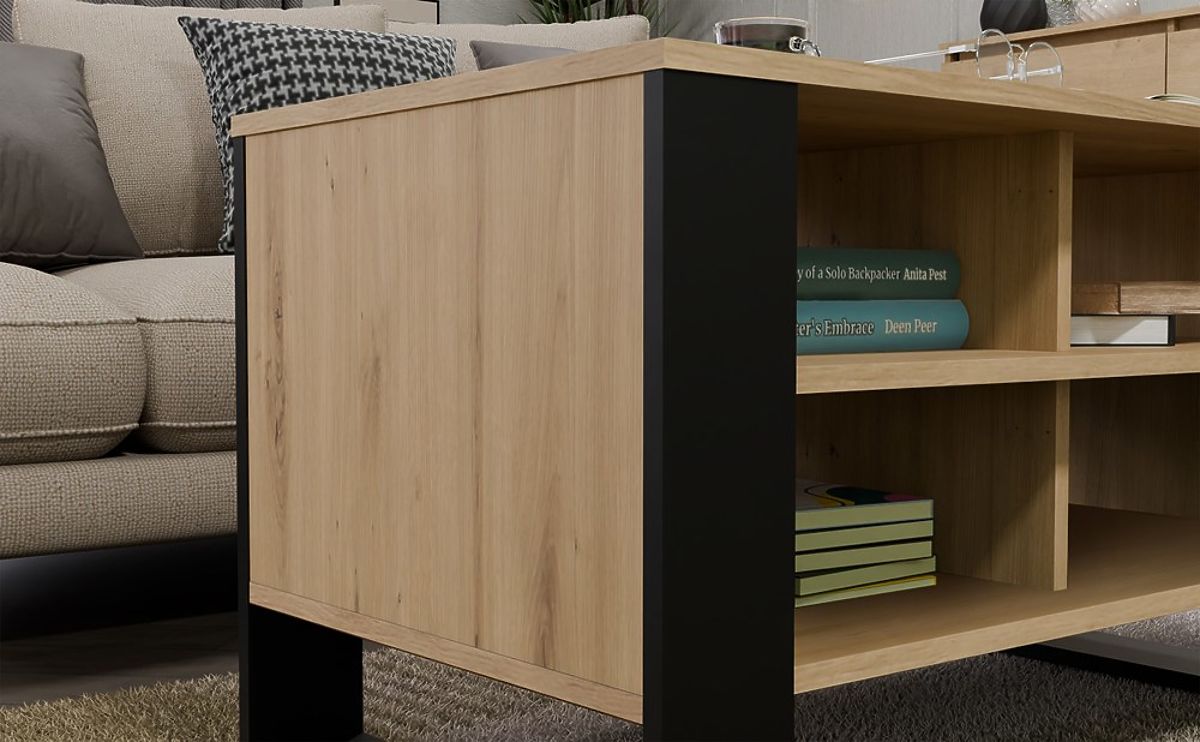 Table basse moderne avec 4 étagères spacieuses. .. plus