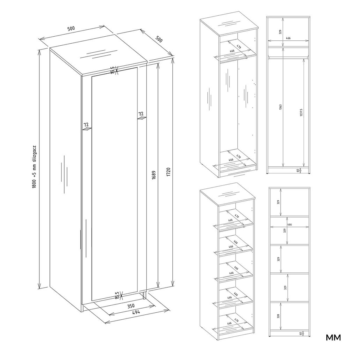 ARMOIRE SD-50 MIROIR – ARMOIRE ÉTROITE AVEC MIROIR SUR LA FACE AVANT