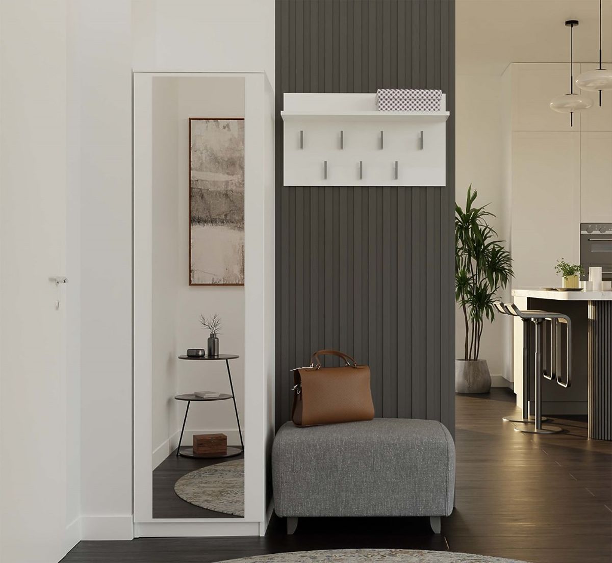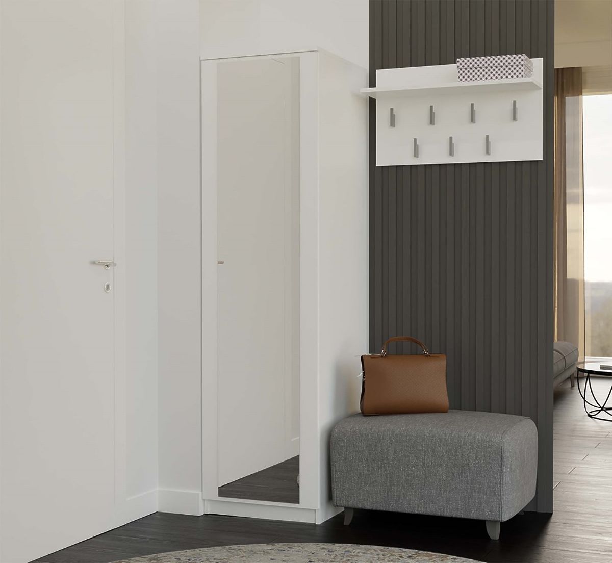 Miroir sur la face avant – armoire étroite avec miroir pleine grandeur, solution idéale pour les petits espaces