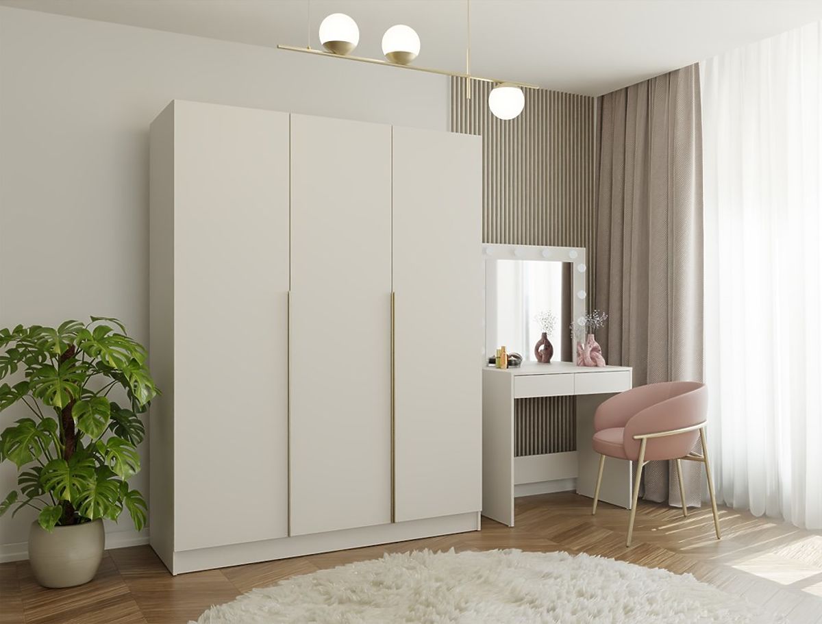 ARMOIRE SENSO 3D 150 CM 3 PORTES POIGNÉES DORÉES POUR SALON CHAMBRE À COUCHER CASHMERE BEIGE