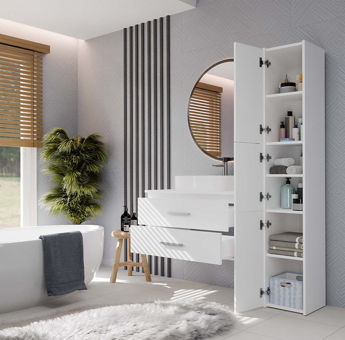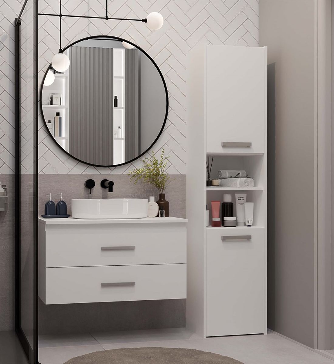 La NEL 80 est une armoire de salle de bain pratique, idéale pour les intérieurs modernes, qu'ils soient de taille moyenne ou plus petits.