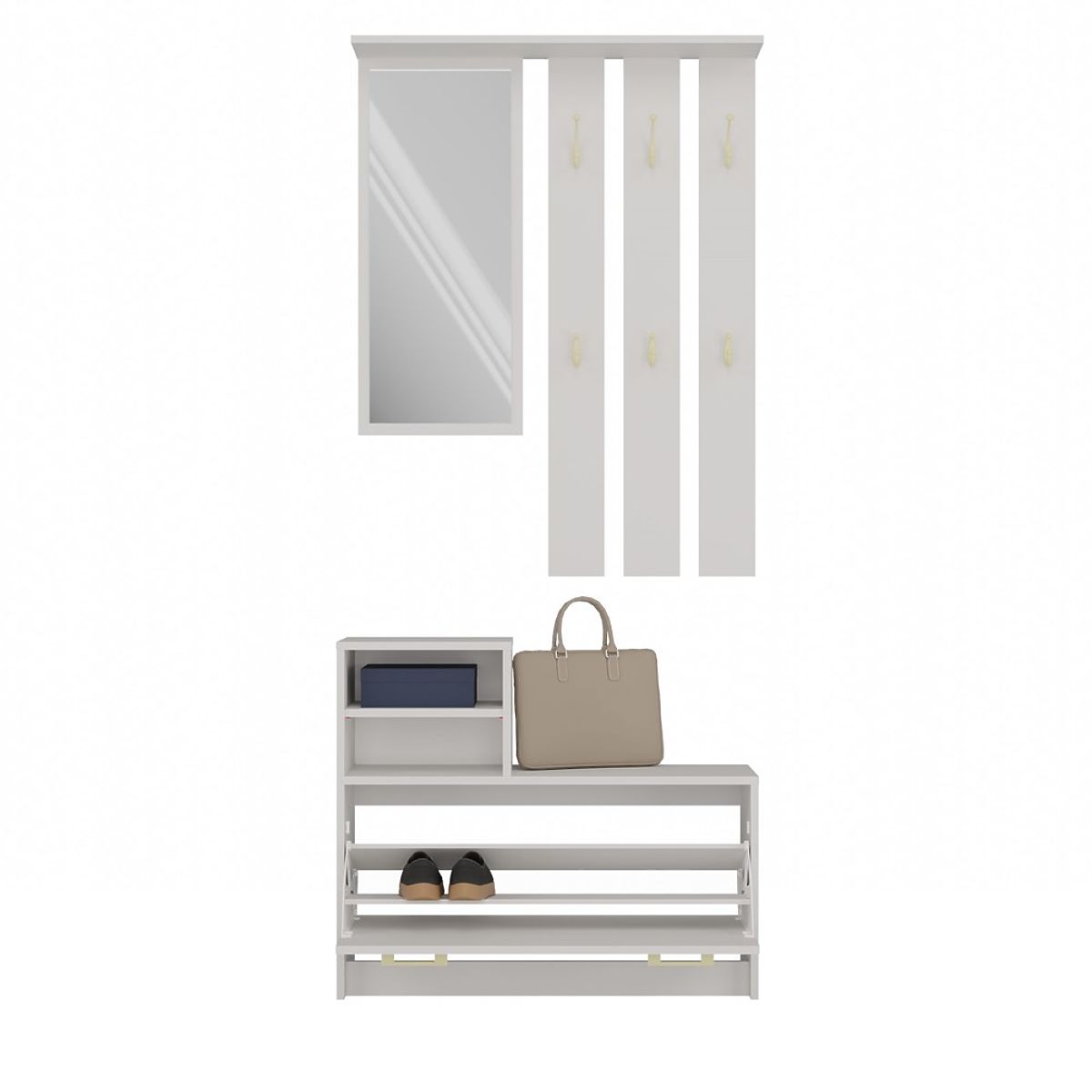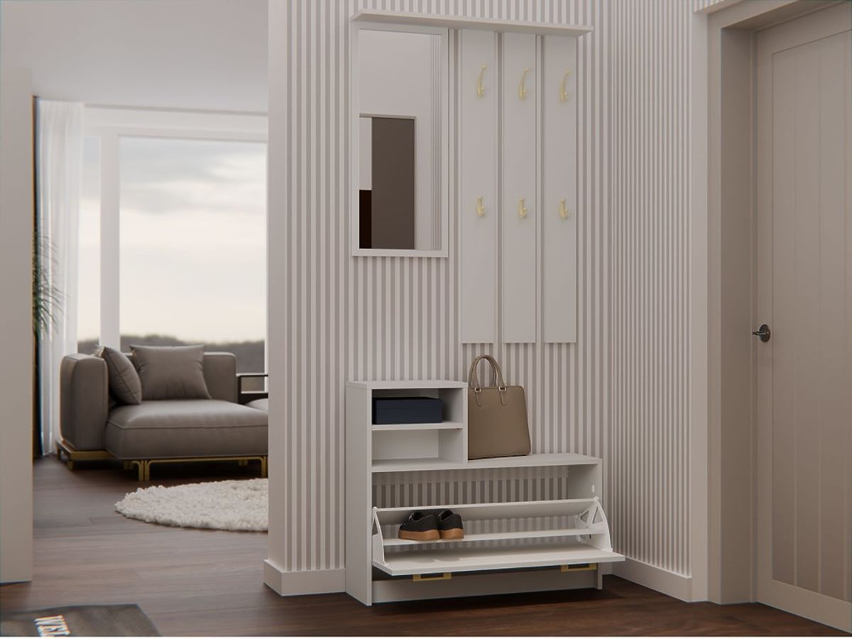 Armoire d'entrée avec crochets réglables et miroir. .. plus