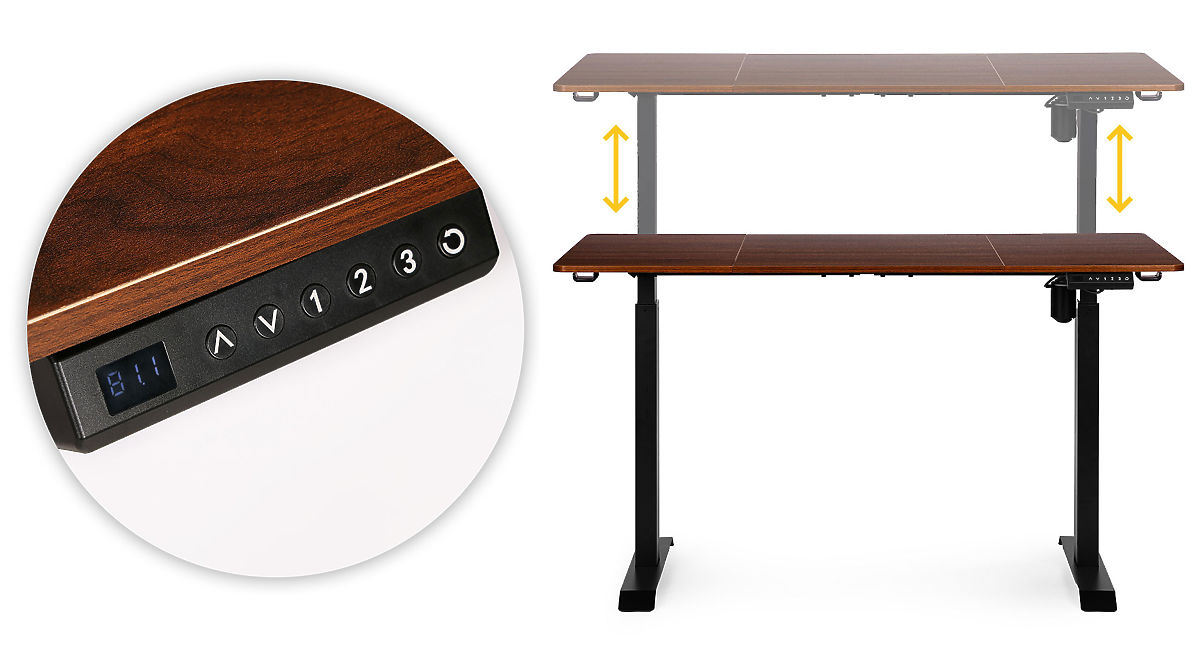 CONTRÔLE TOTAL À PORTÉE DE MAINLe panneau de contrôle intuitif avec boutons haut/bas permet de régler précisément la hauteur du plateau et trois boutons numériques permettent de mémoriser les positions préférées. De plus, il est possible de programmer un rappel de changement de position toutes les 30, 45 ou 60 minutes, ce qui encourage le maintien de bonnes habitudes de travail.