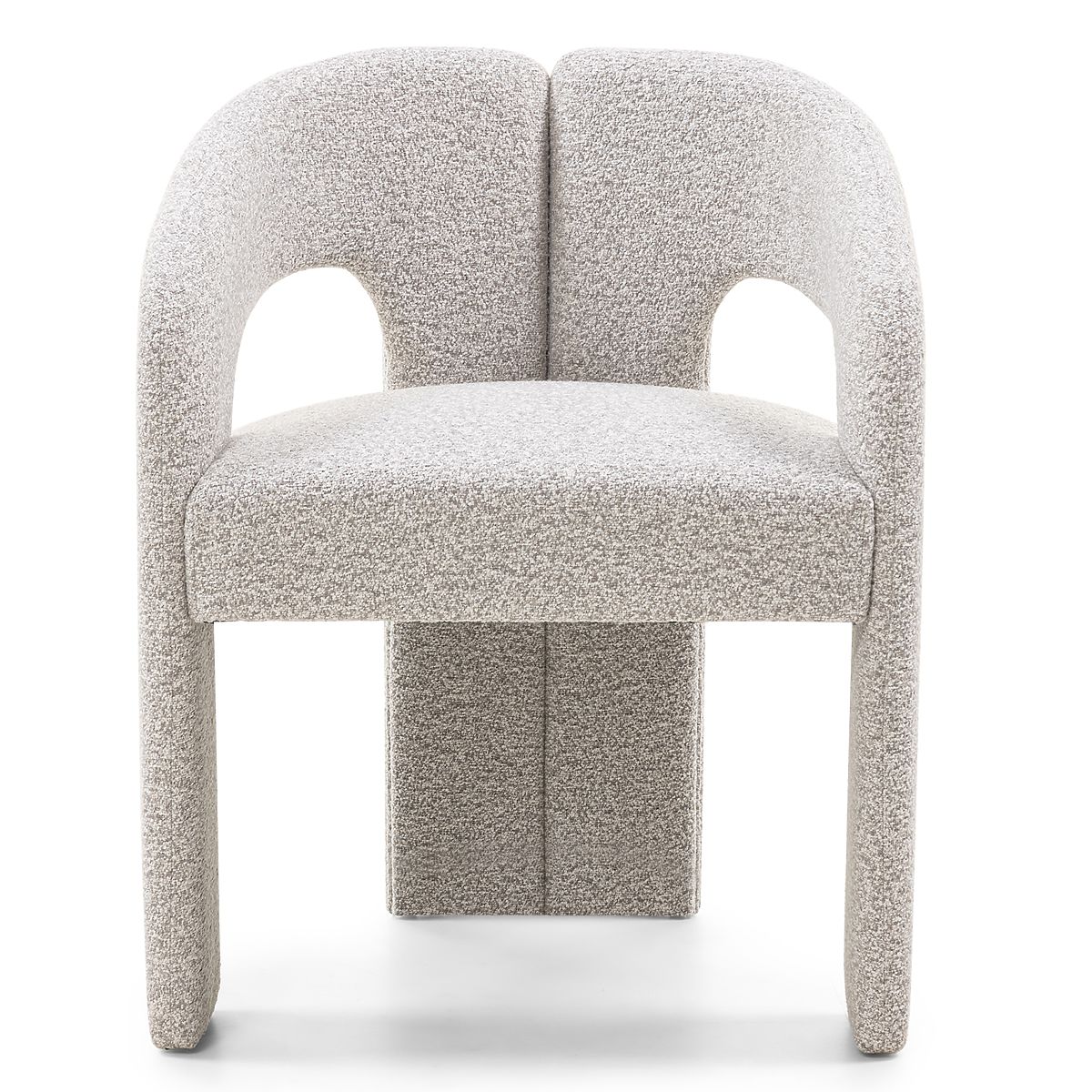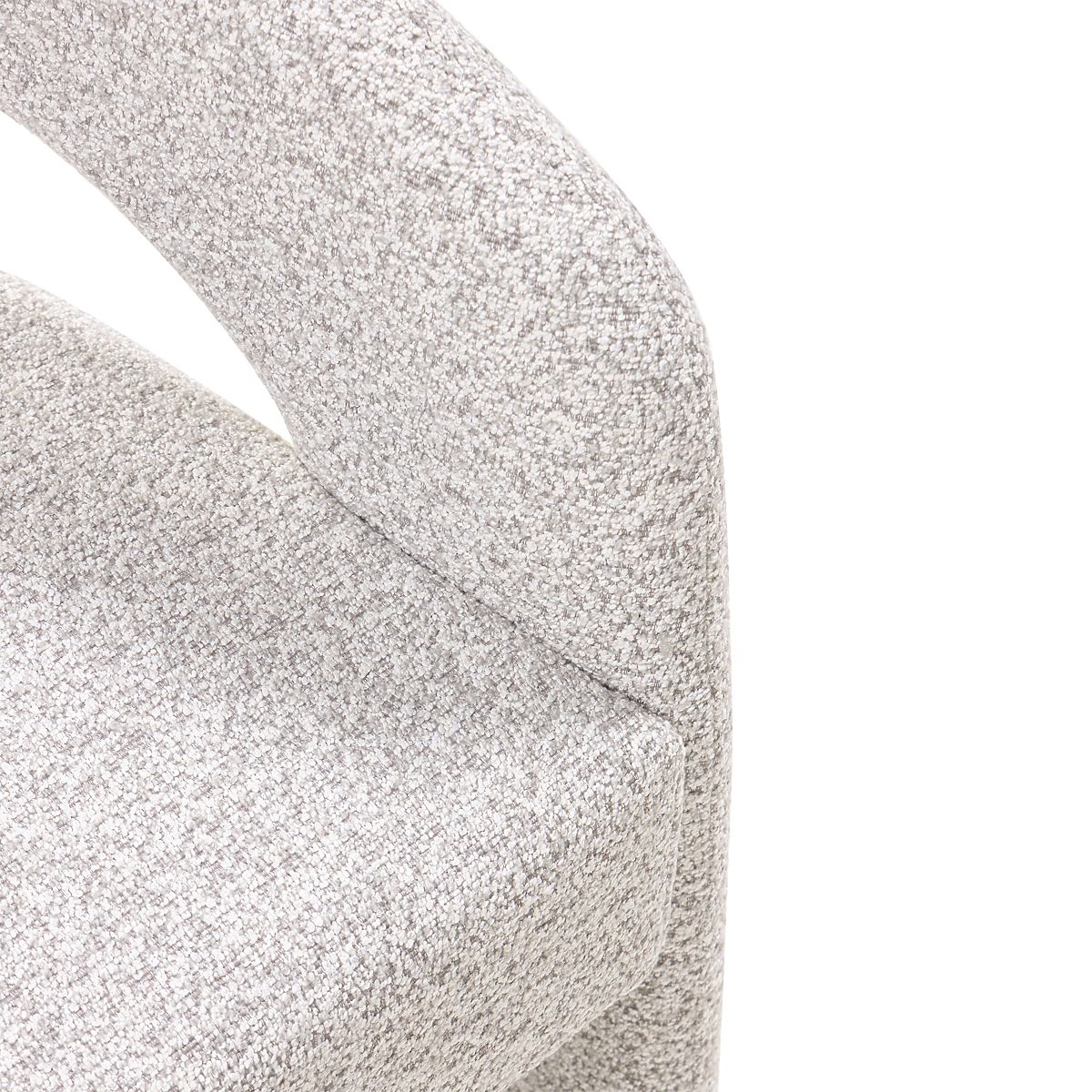 Chaise rembourrée Castelo avec tissu gris-beige et formes arrondies. .. plus