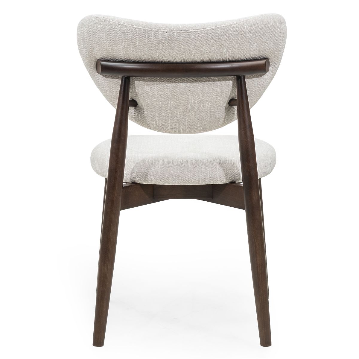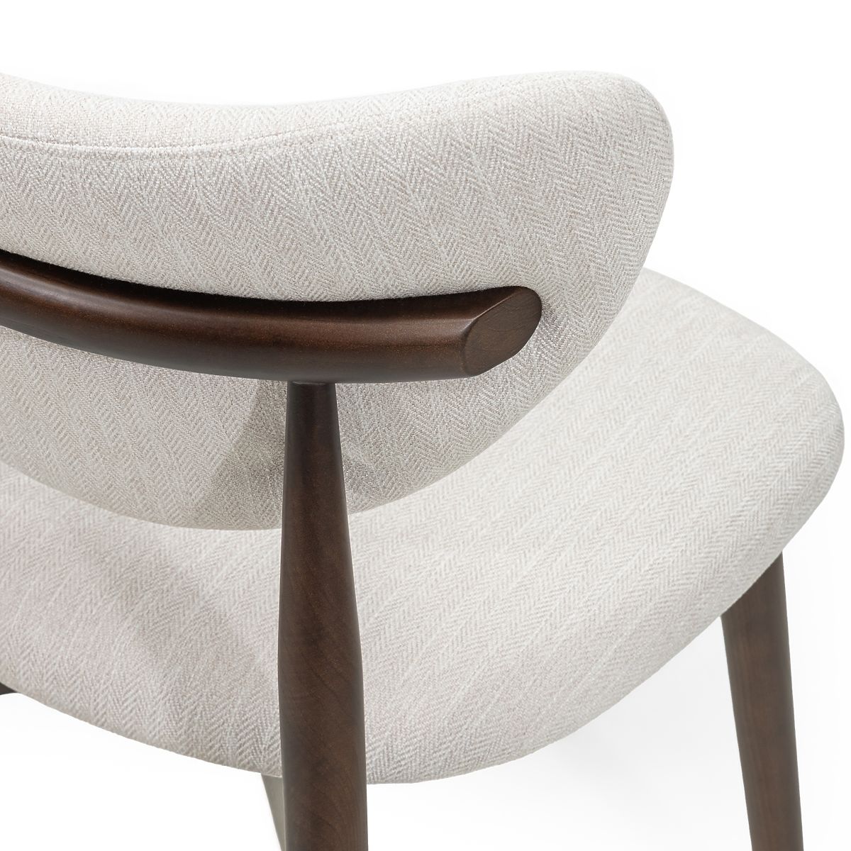 Chaise moderne et confortable avec revêtement beige et pieds en bois de frêne noyer. .. plus