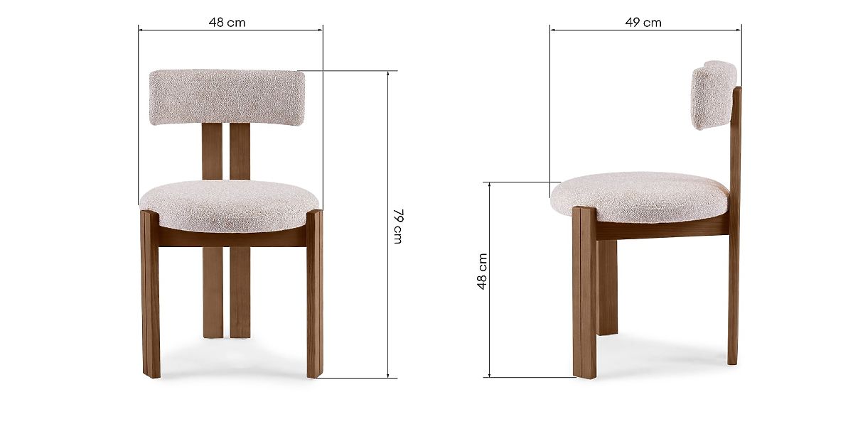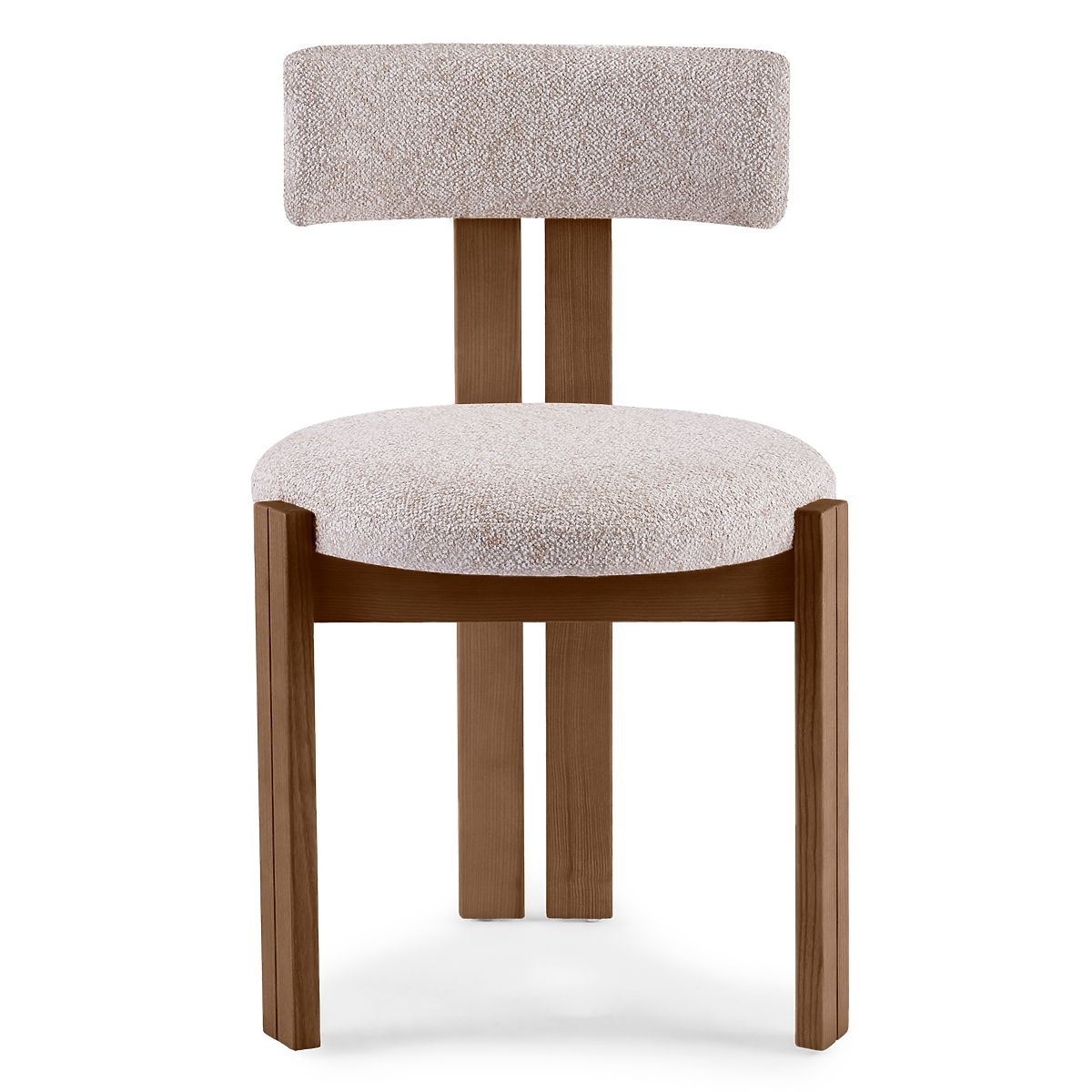 Chaise moderne avec revêtement beige-crème et structure en bois de frêne marron. .. plus