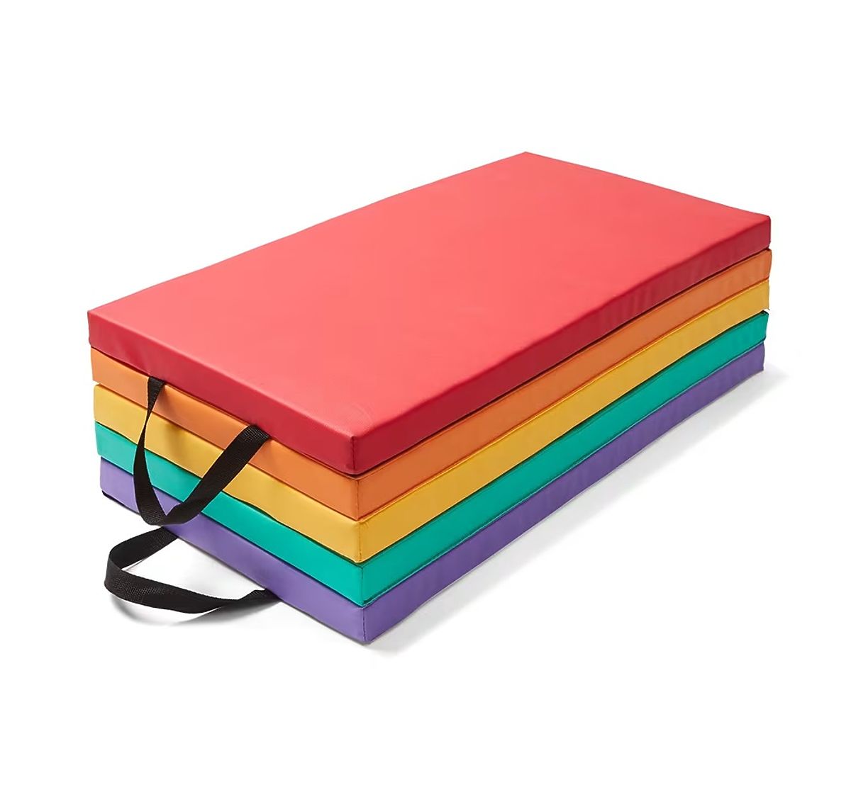 Tapis d'exercice coloré avec design arc-en-ciel et poignées pratiques. .. plus