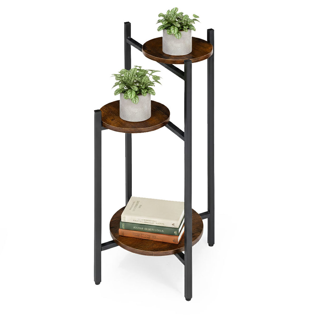 Support pour plantes à trois niveaux en acier avec étagères en aggloméré. .. plus
