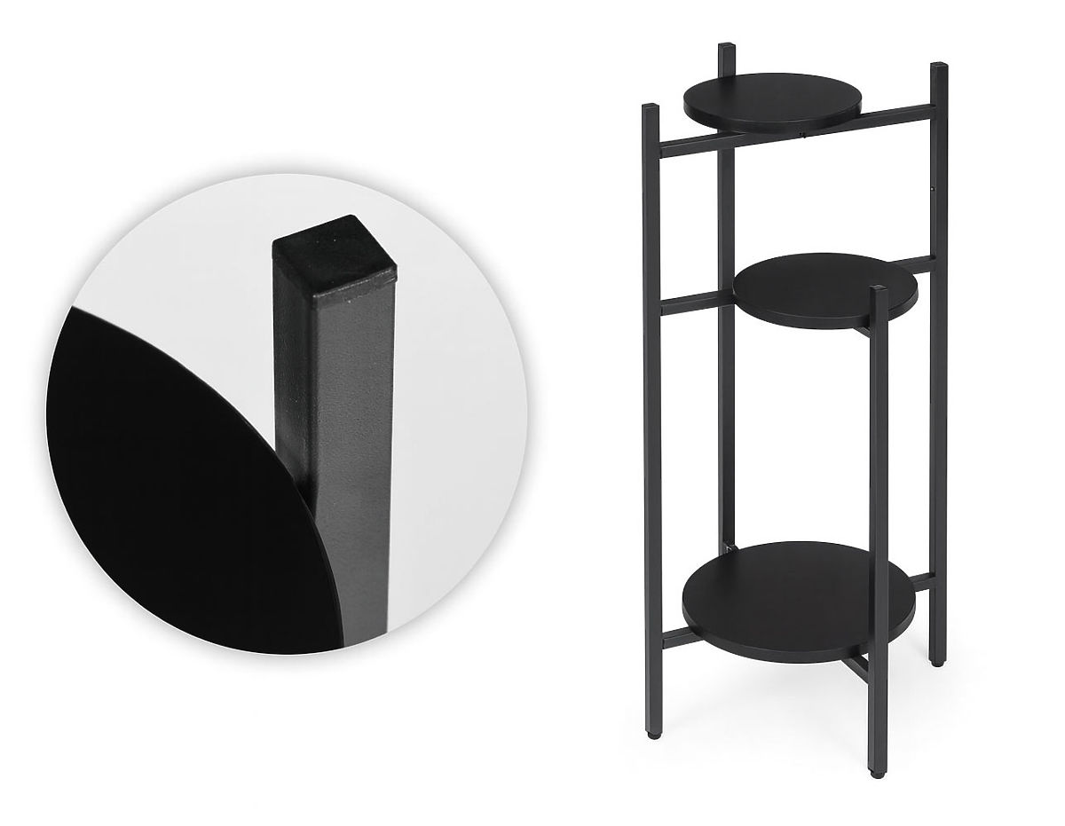 Support de fleurs noir à 3 niveaux pour trois pots. .. plus